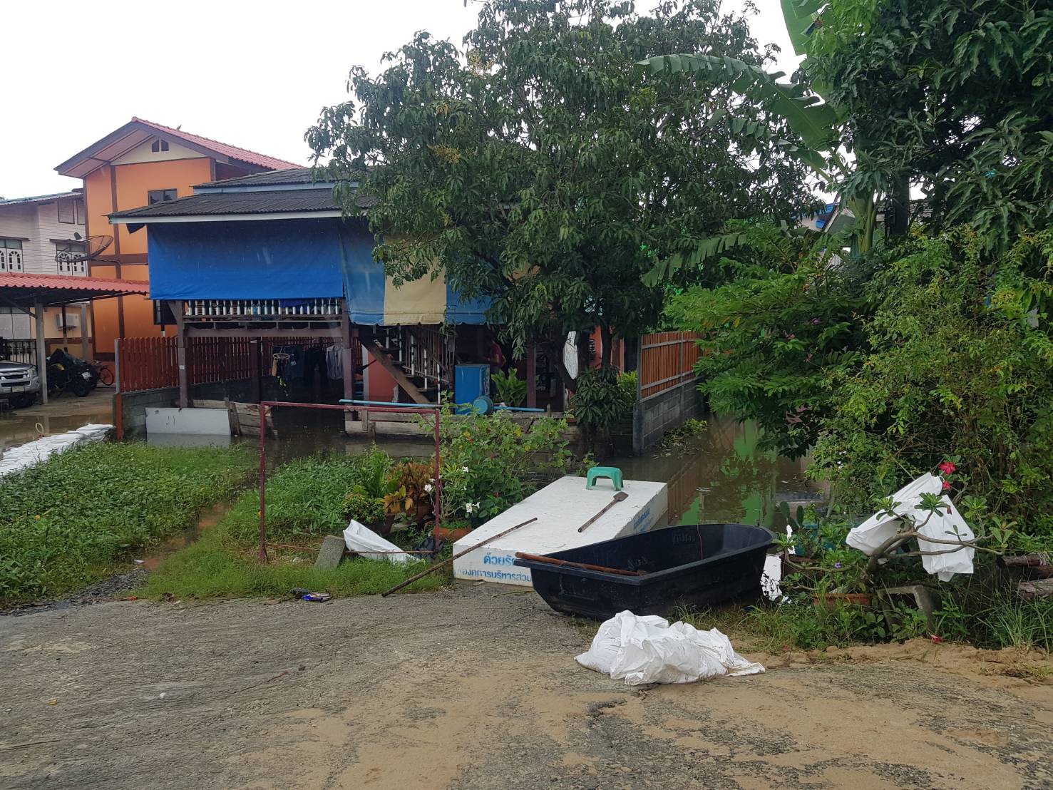 และสำหรับชาวบ้านซึ่งอยู่ฝั่งริมถนน ทาง อบต.ท้ายเกาะ ได้มีการนำกระสอบทราย มากั้นทางน้ำและทำทางเดินเข้าบ้านให้เพื่อจะได้ใช้ชีวิตสะดวกมากขึ้น แต่อย่างไรก็ตามระดับน้ำซึ่งท่วมขัง บริเวณชั้น 1 ทั้งหมด ก็ทำให้การใช้ชีวิตค่อนข้างลำบาก และระยะเวลาที่ประสบปัญหาน้ำท่วม จนถึงเวลานี้เกิน 1 เดือนแล้ว ในขณะที่ระดับน้ำในปีนี้ชาวบ้าน ระบุว่าสูงกว่าในปีที่ผ่านมา และใกล้เคียงกับปี 2554