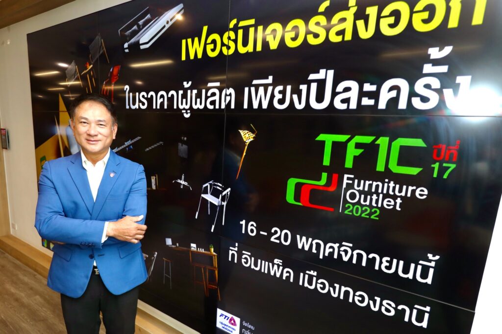 นายธนทัต ชวาลดิฐ ประธานกลุ่มอุตสาหกรรมเฟอร์นิเจอร์ สภาอุตสาหกรรมแห่งประเทศไทย เปิดเผยว่า “ จะมีการจัดงาน TFIC Furniture Outlet 2022 ครั้งที่ 17 ระหว่างวันที่ 1620 พฤศจิกายน 2565 ณ อาคาร 9 -10 ศูนย์แสดงสินค้าและการประชุมอิมแพ็ค เมืองทองธานี ภายใต้แนวคิด งานเฟอร์นิเจอร์ส่งออกในราคาผู้ผลิต โดยระดมผู้ส่งออกและผู้ผลิตเฟอร์นิเจอร์ตัวจริงกว่า 70 ราย ซึ่งเป็นรวมตัวของสมาชิกของกลุ่มอุตสาหกรรมเฟอร์นิเจอร์ สภาอุตสาหกรรมแห่งประเทศไทย ครั้งยิ่งใหญ่ มาร่วมกันจัดแสดงและจำหน่ายปลีก เป็นเวลา 5 วัน เพื่อมอบความพิเศษครบจบในงานเดียว ให้กับผู้ซื้อสินค้าในราคาโรงงาน ลดสูงสุดถึง 80% นอกจากความพิเศษในด้านราคาแล้ว ยังมีเฟอร์นิเจอร์จากแบรนด์ชั้นนำ คุณภาพส่งออก หลากหลายสไตล์ รองรับทุกความต้องการ ทั้งเฟอร์นิเจอร์สำนักงาน เฟอร์นิเจอร์ไม้ เฟอร์นิเจอร์โซฟา เฟอร์นิเจอร์อะลูมิเนียม เฟอร์นิเจอร์เครื่องนอน รวมไปถึง ของตกแต่งบ้านที่หลากหลายมาให้เลือกอย่างมากมาย อาทิ เฟอร์นิเจอร์สำนักงานจากร้อกเวิธ, เฟอร์นิเจอร์ไม้จาก โอ.เค.วู้ด โปรดั๊ค , พิโคที, อารีย์อภิรักษ์, แอคมิ, Flo, เฟอร์นิเจอร์โซฟาจาก เลซีบอย, GUZZO, เฟอร์นิเจอร์อลูมิเนียมจาก KUN,เฟอร์นิเจอร์ตกแต่งบ้านจาก ไทยลีฟวิ่ง เซนเตอร์บริษัทในเครือ SB และ เฟอร์นิเจอร์เครื่องนอนจากซินด้า เป็นต้น