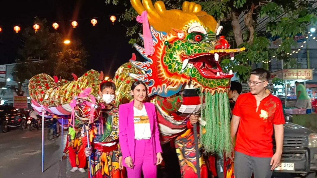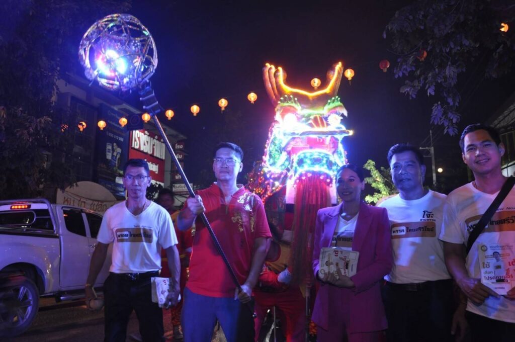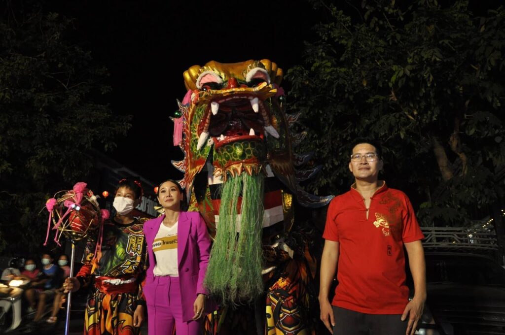 ‘ไทยศรีวิไลย์’ ลงพื้นที่อ่างทอง ร่วมขบวนแห่สิงโตในงานศาลเจ้าพ่อกวนอู พร้อมพา ‘กุ้งพลอย’ แนะนำตัวเพื่อขอเสียงสนับสนุน