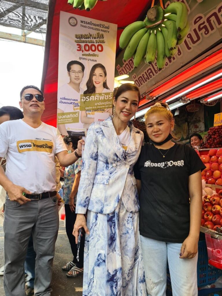 นางสาวอริญรดา สาระชัย นายทะเบียนพรรค,นางสาวกฤษยากร สรชัย ผู้ช่วยเหรัญญิกพรรค,นายอนุรักษ์ อมรเมตตาจิตต์ ผู้ช่วยเลขาธิการพรรค , นายอนวรรช ศรีคำเงิน กรรมการบริหารพรรค และ นางสาวชนิมณฑ์ สืบอ้าย เจ้าหน้าที่พรรค ร่วมลงพื้นที่ เขตบางแค กรุงเทพมหานคร เพื่อเปิดตัว นางสาวอรศศิพัชร์ มามีเกตุรัตน์ นักแสดงละครชื่อดังที่มีผลงานกว่า 20 ปี