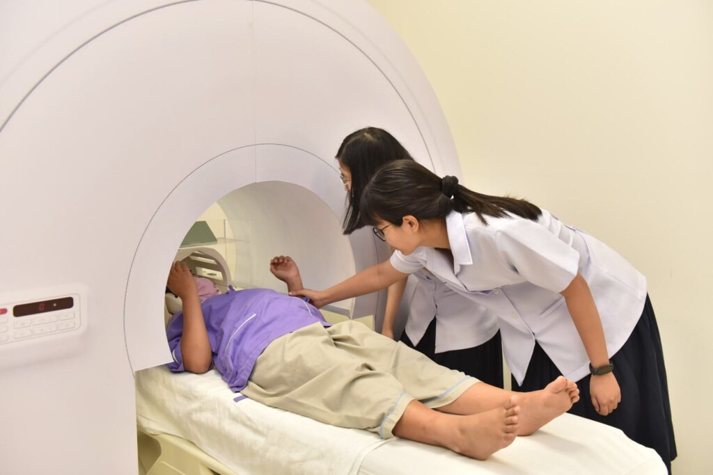 ขณะตรวจด้วยเทคนิค fMRI ในอาสาสมัครเด็ก (MRI mock-scanner for the reduction of head movement in pediatric participants undergoing fMRI scanning) ของ น.ส.นันทิกานต์ สงทิพย์ (มะเหมี่ยว) , น.ส.พรรษชนก ปันทะรส (ต้นเทียน) , น.ส. ปิยณิตา กลิ่นจำปา (ปรางค์) เพิ่งได้รับรางวัลชนะเลิศ ในโครงการประชุมวิชาการนักศึกษารังสีเทคนิค ครั้งที่ 3 ประจำปี 2566 อีกด้วย