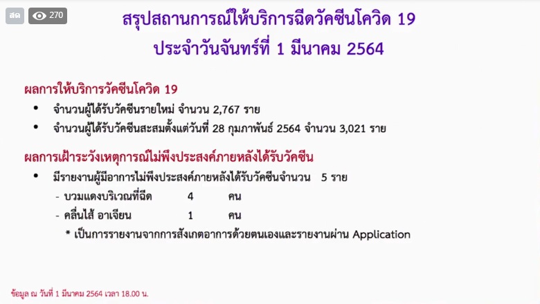 สธ.กระจายวัคซีนโควิด-19 แล้ว 13 จังหวัด พบผู้มีผลข้างเคียง 5 คน ปัดมี VIP ขณะปลัดสธ.จ่อตั้งคณะกรรมการสอบเรื่องดังกล่าว