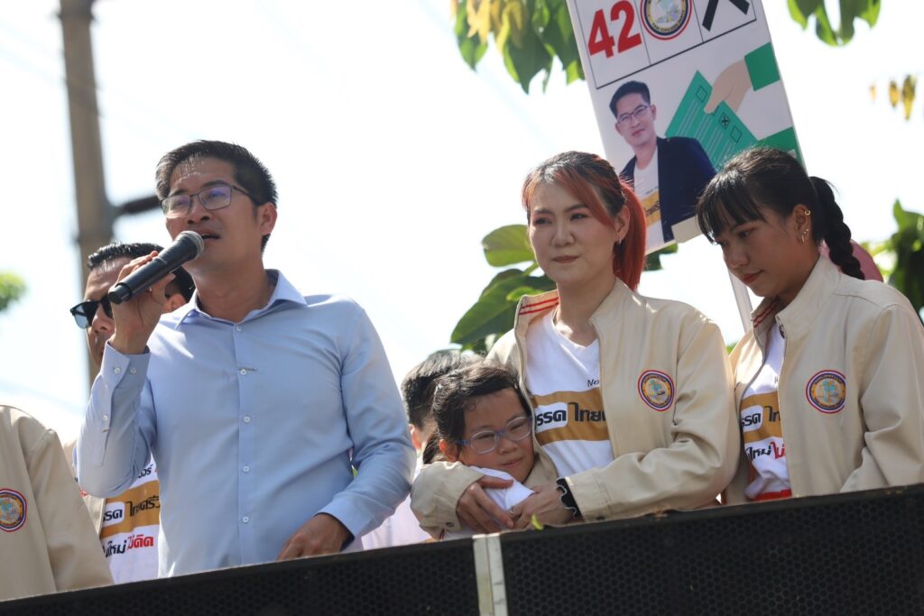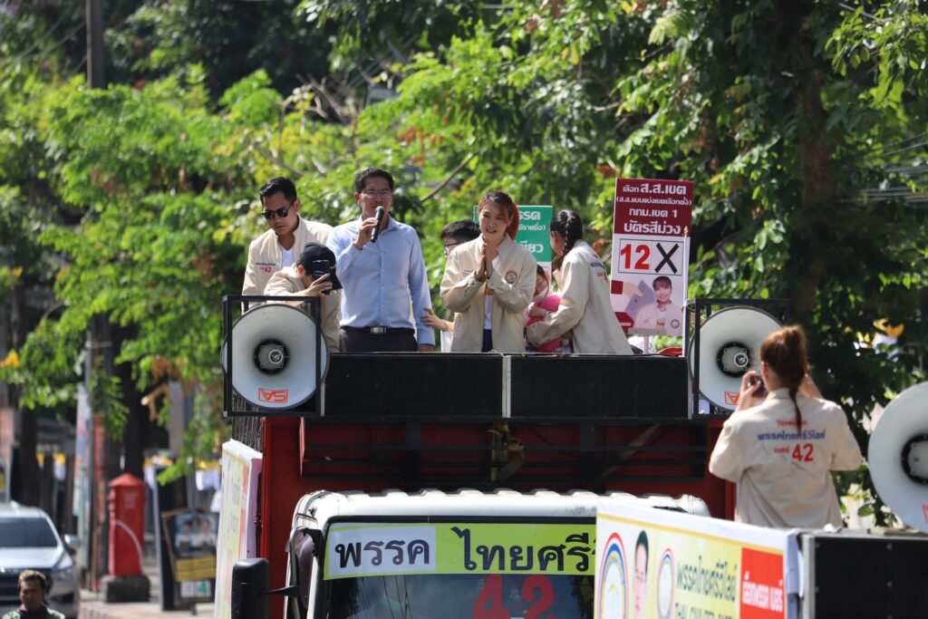 ‘ไทยศรีวิไลย์’ ขึ้นรถแห่ช่วย ‘มาดามอ้อ – อุ๋มอิ๋ม’ หาเสียงช่วง 100 เมตรสุดท้าย พร้อมประกาศขอเสียงคนไทยช่วยกันแสดงพลัง เลือก ‘ไทยศรีวิไลย์’ ย้ำถ้าเลือกแล้ว ‘เสียงของท่าน จะดังในสภา’ อย่างแน่นอน
