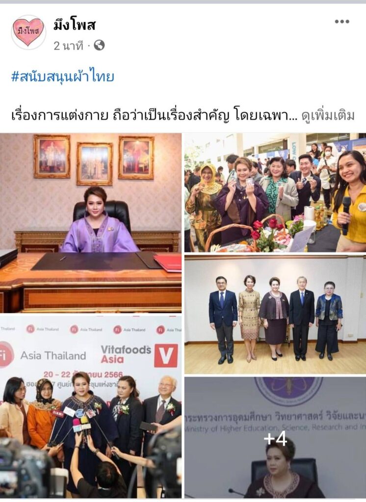 ล่าสุด “ผึ้ง ศุภมาส อิศรภักดี” รัฐมนตรีว่าการ กระทรวงการอุดมศึกษา วิทยาศาสตร์ วิจัยและนวัตกรรม ได้เปิดใจถึงเรื่องนี้ว่า “รู้สึกเป็นเกียรติและดีใจค่ะ ที่เราได้มีส่วนในการสนับสนุนงานศิลปหัตถกรรมของไทย โดยเฉพาะผ้าไทย อันเป็นมรดกจากภูมิปัญญาคนไทย ซึ่งภูมิปัญญาเหล่านี้ ไม่ได้มาจากที่เดียว แต่ยังมีที่มาจากหลายภาคหลายจังหวัดในประเทศไทย อย่าลืมว่าเดิมทีผ้าไทยเป็นหนึ่งในโครงการหลวง ซึ่งมีการส่งเสริมการทอผ้าไทยและยกระดับผ้าไทย ด้วยการจัดตั้งมูลนิธิส่งเสริมศิลปาชีพขึ้นมา