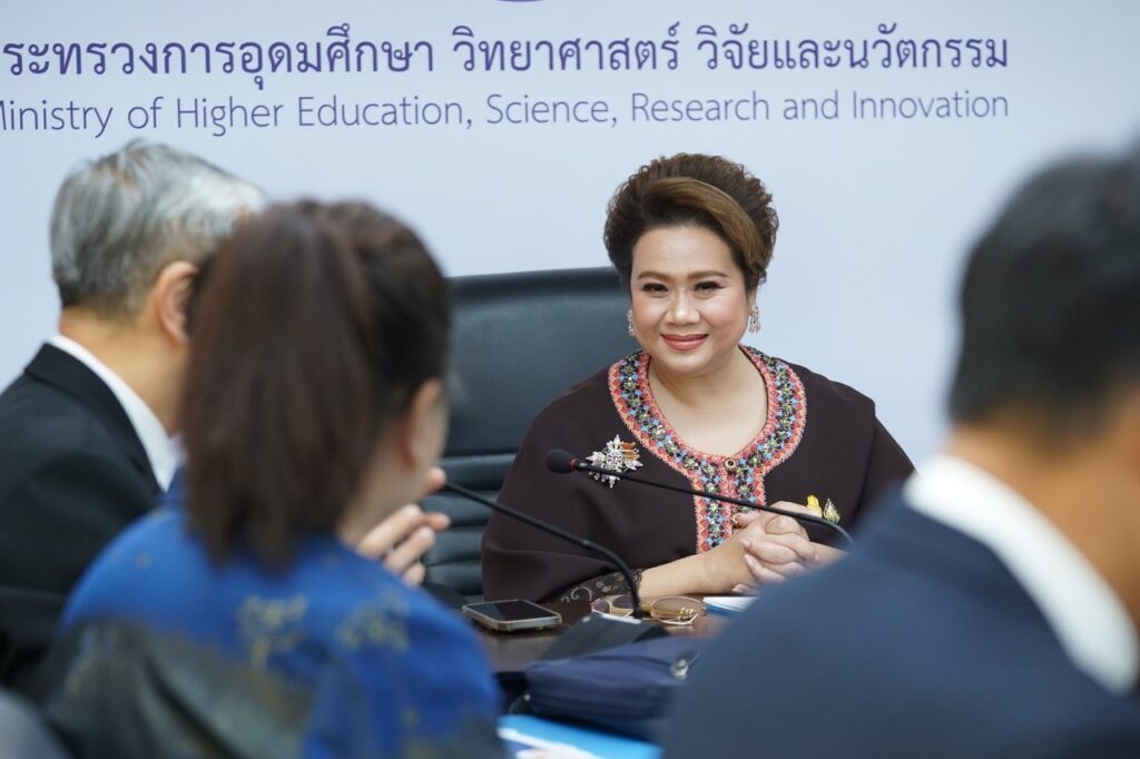 นอกจากนี้ คนอาจจะไม่ทราบว่าผ้าไทยสมัยใหม่มีการใช้งานวิจัยและนวัตกรรมเข้ามาร่วมด้วย ตั้งแต่การออกแบบลวดลาย การคัดเลือกวัตถุดิบที่จะมาทอผ้า การเขียนโปรแกรมคอมพิวเตอร์ต่างๆ มาประดิษฐ์เป็นลวดลาย ใช้ปัญญาประดิษฐ์ AI มาร่วม เพื่อให้ความสวยงามลงตัว ปัจจุบันมีผ้าไทย ที่ได้รับรางวัลงานวิจัยและนวัตกรรมค่อนข้างเยอะ ซึ่งแน่นอนว่า กระทรวงการอุดมศึกษา วิทยาศาสตร์ วิจัยและนวัตกรรม จะส่งเสริมและพัฒนาผ้าไทยต่อไปให้เป็นที่ยอมรับทั่วโลกต่อไปค่ะ” ผึ้ง ศุภมาส อิศรภักดี กล่าว