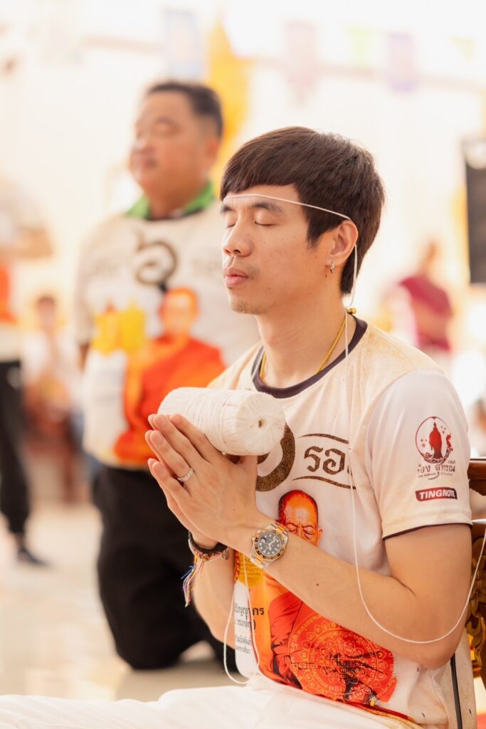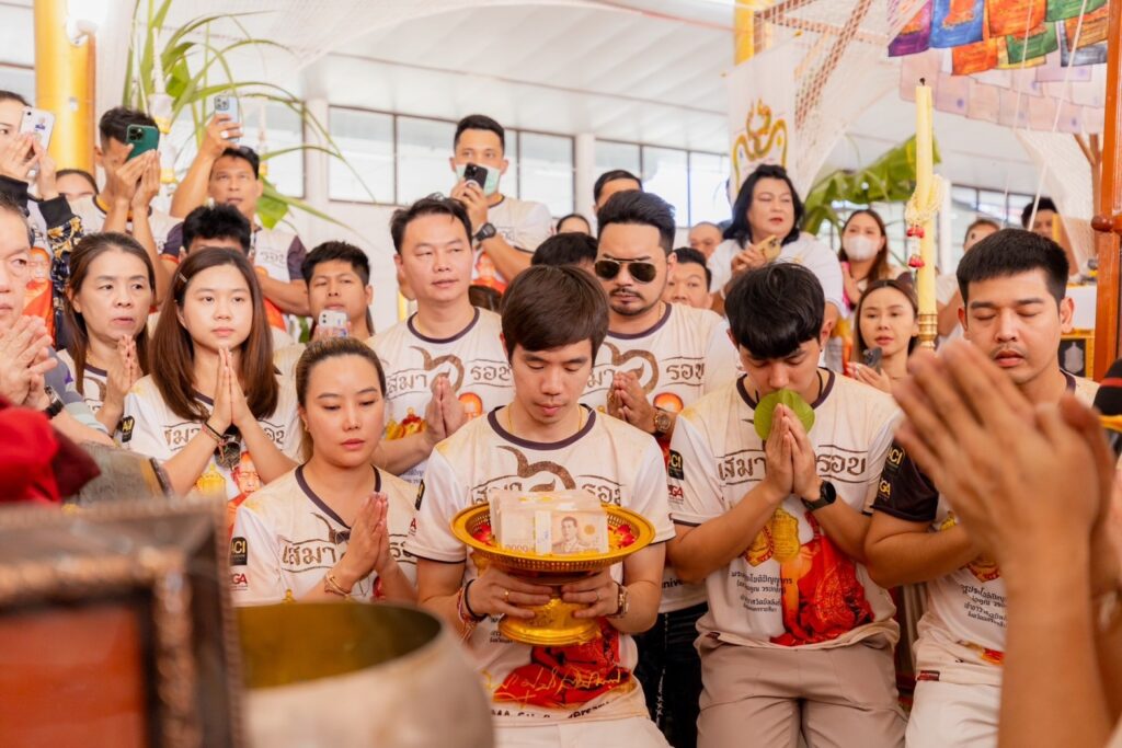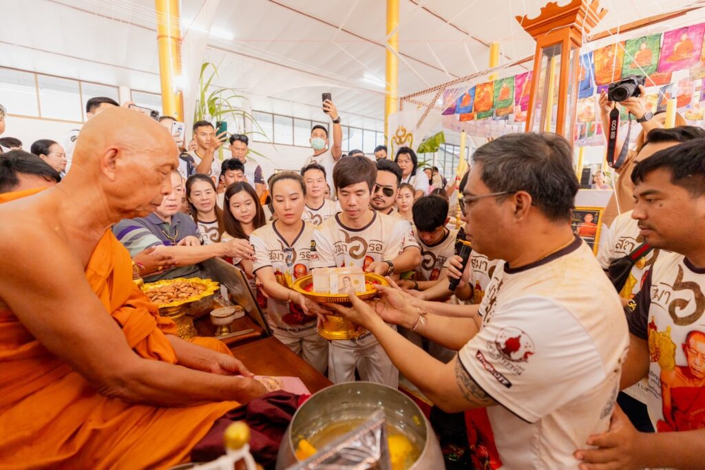 “เป็นเกียรติอย่างยิ่งในชีวิตนึงที่เราได้ทำอะไรเพื่อพระพุทธศาสนา ผมก็ได้ทำบุญถวาย 1 ล้านบาท และทำวัตถุมงคลให้เป็นที่ประจักษ์ รุ่น เสมา 6 รอบหลวงพ่อคูณ วรปัญโญ และทำพระผง 6 รอบเพื่อจะแจกให้แก่ผู้ที่ร่วมทำบุญกฐินในวันนี้ จำนวน 8,991 องค์ มอบให้พี่ๆ น้องๆ และรุ่นเสมา 6 รอบก็ทำเพื่อจะให้ผู้ที่มีจิตศรัทธาได้เช่าไปบูชา เพื่อจะเป็นการเผยแพรบารมีของหลวงพ่อ โดยยอดทำบุญรวมวันนี้เกิน 2 ล้าน”