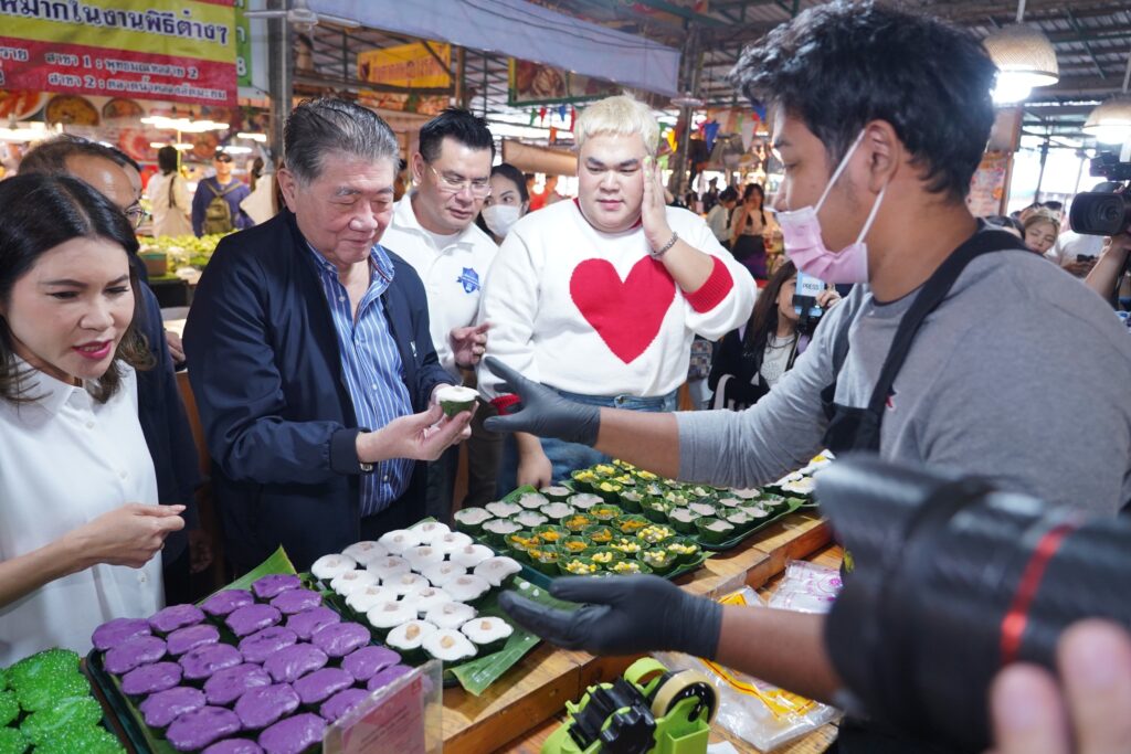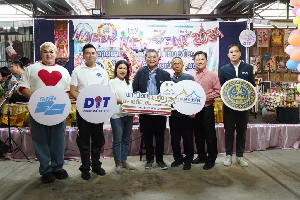 ชูจันทร์ ประธานประชาคมตลาดน้ำคลองลัดมะยม ให้การต้อนรับพร้อมพาเที่ยว “ตลาดน้ำคลองลัดมะยม” เขตตลิ่งชัน กรุงเทพมหานคร หนึ่งในตลาดต้องชม จาก 121 แห่ง ทั่วประเทศ และเยี่ยมชมโซนสินค้า “ธงฟ้า ราคาประหยัด“ ลดรายจ่าย เพิ่มรายได้ ขยายโอกาส พร้อมมีกิจกรรมให้นักท่องเที่ยวร่วมถ่ายภาพ ณ จุด Landmark เช็คอินพร้อมแชร์ผ่านช่องทางสื่อโซเซียลมีเดีย เพื่อรับคูปองชวนช้อป 50 บาททันที จาก DIT GO เมื่อมาเที่ยวตลาดต้องชมทั่วประเทศ มอบเป็นของขวัญปีใหม่ให้ประชาชน เพื่อกระตุ้นการบริโภค เพิ่มรายได้ ขยายโอกาส ให้กับชุมชนให้มากที่สุดในช่วงเทศกาลปีใหม่ นอกจากนี้ภายในงานมีนักแสดงชื่อดัง ปิงปอง – ธงชัย ทองกันทม ร่วมเชิญชวนเดินเที่ยวชม ช้อป ชิม สินค้าตลาดต้องชม “ตลาดน้ำคลองลัดมะยม” แวะเยี่ยมชมสินค้าภายในตลาดต้องชมโดยมอบของที่ระลึก และรอยยิ้มแห่งความสุข ด้วยอมยิ้มระหว่างเยี่ยมชม แวะชิมไอศกรีมโบราณ แวะชมสาธิตขนมถั่วแปบ ขนมเบื้องไทย ถั่วทอด และข้าวเกรียบว่าว เพ้นท์หัวโขน ชมหนังตลุงปักษ์ใต้ แห่งเดียวในกรุงเทพมหานคร อีกทั้งชมการแสดงรำอวยพรจากเด็กนักเรียนในชุมชน (โรงเรียนวัดสโมสร) พร้อมอวยพรปีใหม่ให้แก่เด็กและประชาชนที่มาเที่ยวตลาดฯ ในวันนี้