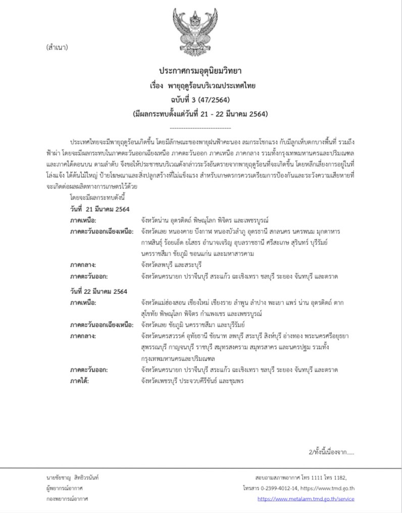 นางศิลปสวย ระวีแสงสูรย์ ปลัดกรุงเทพมหานคร เปิดเผยถึง กรณีกรมอุตุนิยมวิทยาได้ออกประกาศเตือน พายุฤดูร้อน บริเวณประเทศไทย มีผลกระทบตั้งแต่วันที่ 21-22 มี.ค.นี้ ซึ่งในช่วงวันดังกล่าวประเทศไทยจะมีพายุฝนฟ้าคะนอง ลมกระโชกแรง และมีลูกเห็บตกบางพื้นที่ โดยกรุงเทพฯ และปริมณฑล จะได้รับผลกระทบในระยะต่อไปว่า สำนักการระบายน้ำได้เตรียมความพร้อมระบบระบายน้ำ โดยตรวจสอบประสิทธิภาพของอุโมงค์ระบายน้ำ สถานีสูบน้ำ และบ่อสูบน้ำให้พร้อมใช้งานทุกสถานี ลดระดับน้ำในคลองให้อยู่ในระดับต่ำ สำรวจและติดตั้งเครื่องสูบน้ำชั่วคราวในพื้นที่จุดเสี่ยงและจุดเฝ้าระวังน้ำท่วม ล้างทำความสะอาดท่อระบายน้ำ ขุดลอกคูคลอง เปิดทางน้ำไหล จัดเก็บขยะวัชพืช