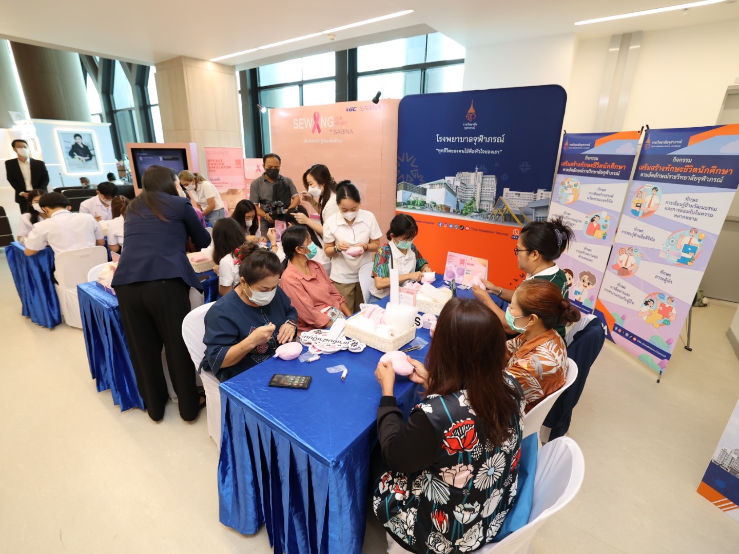 “เย็บเต้านมเทียม” กับโครงการ Sabina Sewing Cup Sewing Heart “เย็บเต้ารวมใจ สู้ภัยมะเร็งเต้านม” โดยมี รัก-สุลักษมิ์ ศิริภัทรพงศ์ มิสแกรนด์สุราษฎร์ธานี 2022 และสโมสรนักศึกษาราชวิทยาลัยจุฬาภรณ์ นำคณะนักศึกษาราชวิทยาลัยจุฬาภรณ์จิตอาสามาร่วมทำกิจกรรมเสริมสร้างทักษะชีวิตและปลูกฝังการช่วยเหลือประชาชนด้วยความเพียรและจิตเมตตา ร่วมทำกิจกรรมเย็บเต้านมเทียมเพื่อส่งมอบให้กับผู้ป่วยมะเร็งเต้านม โรงพยาบาลจุฬาภรณ์