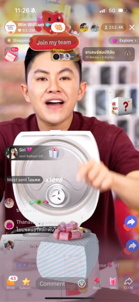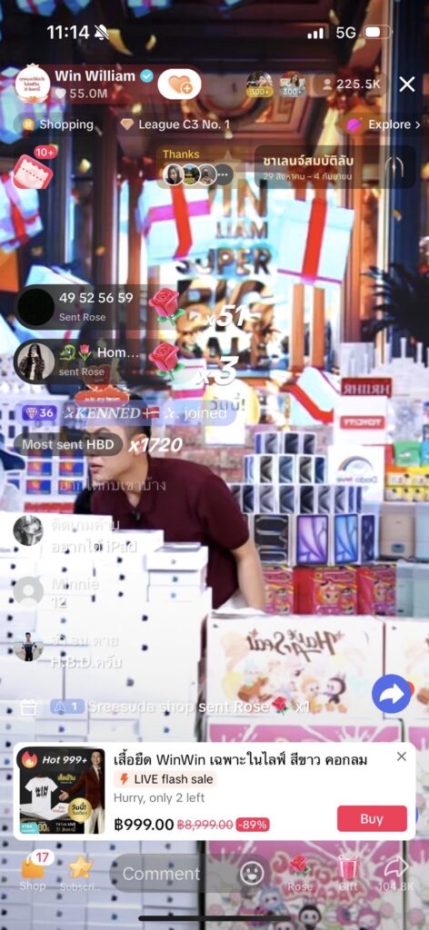 วิน วิลเลี่ยม เจ้าพ่อไลฟ์ขายของ ยังยืน 1 ตัวจริงของแท้ ทั้งยอดคนดูไลฟ์ ยอดขาย ยอดแชร์ ยอดแอนเกจ ไม่ว่าจะหยิบจับไลฟ์ขายอะไรๆ คนก็พร้อมในกันแห่ซื้อตลอดๆ ทั้งหมดรวมกันทำให้วิน เป็นนักไลฟ์ขายที่ 1 ทางติ๊กต๊อก TikTok มีคนติดตามสูงมากกว่า 12.8 ล้าน ยอดคนกดถูกใจมากกว่า 266 ล้าน