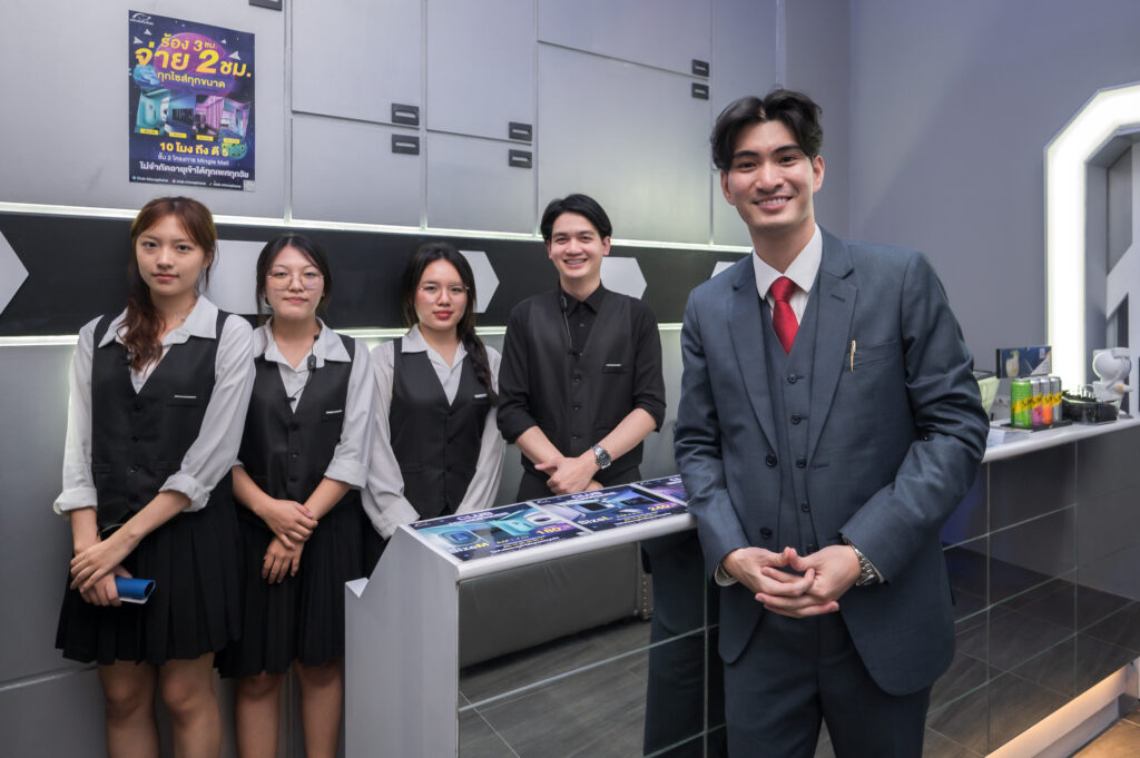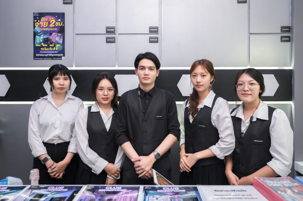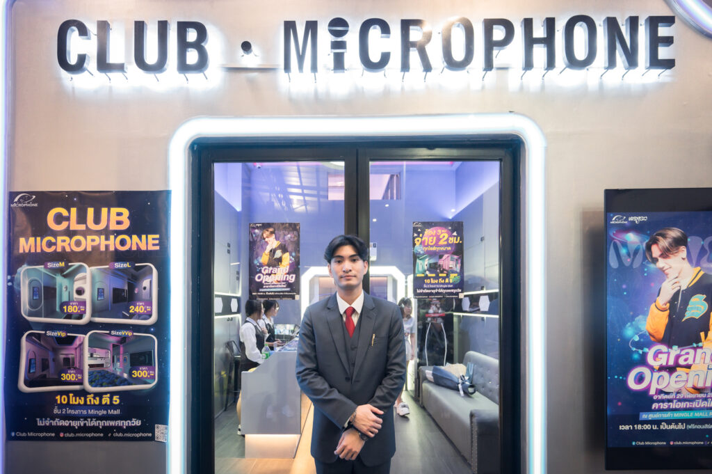 คุณชัยชนะ งามทวี ผู้บริหารฯ คลับไมโครโฟน กล่าวว่า ‘Club Microphone คลับไมโครโฟน คาราโอเกะแห่งโลกอนาคต เป็นนวัตกรรมใหม่สุดล้ำ ที่มาพร้อมดีไซน์สไตล์อวกาศ การตกแต่งทันสมัย เหมือนอยู่ในอวกาศ นอกจากความล้ำสมัยด้านดีไซน์แล้ว ด้านเทคโนโลยีก็ไม่แพ้กัน ที่ผ่านมาเราจะนึกถึงคาราโอเกะทั่วๆไป ที่จะมีแป้นคีย์บอร์ดสำหรับหาชื่อเพลง แต่ของเราจะเป็นจอระบบทัชสกรีน อีกทั้งยังสามารถโหลดแอพพลิเคชั่นและสแกนคิวอาร์โค้ดเข้ามือถือได้ด้วย เวลาเลือกเพลงแค่กดเล่นในมือถือได้เลย ซึ่งคาดว่าคลับไมโครโฟนจะได้รับความนิยมในกลุ่มนักศึกษาที่ชอบความแปลกใหม่ เราจึงหาทำเลที่ตรงกับกลุ่มเป้าหมายหลักของเรา โดยสาขาแรกเปิดที่ มิงเกิล มอลล์ Mingle Mall อยู่ติดกับมหาวิทยาลัยกรุงเทพ รังสิต คือด้วยความที่คลับไมโครโฟนมีเรื่องของเทคโนโลยีความล้ำสมัยมาเกี่ยวข้อง กลุ่มเป้าหมายของเราจึงเป็นคนรุ่นใหม่ที่พร้อมเปิดรับสิ่งใหม่ๆ เราจึงมองว่ามหาวิทยาลัยกรุงเทพ รังสิต เหมาะสม จึงเป็นเหตุผลที่สาขาแรกของเรามาเปิดที่ มิงเกิ้ล มอลล์ Mingle Mall ส่วนสาขาต่อไป เราคิดว่าจะเจาะเข้าไปกลางเมืองหลวง ตอนนี้กำลังดูทำเลหลายๆ ศูนย์การค้าที่อยู่ใกล้ๆ กับมหาวิทยาลัยครับ’