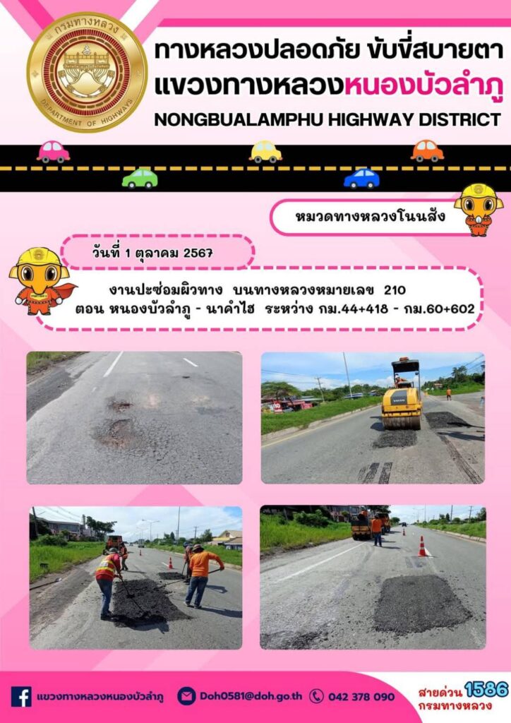 หลังมีการร้องเรียนเรื่องผลกระทบจากทำถนนทางหลวงเส้นทาง 210 จากจังหวัด หนองบัวลำภู. ไปยัง จ.เลย ซึ่งมีต่อเนื่องมาตลอดทั้งปี อีกทั้งการซ่อมแซมก็ไม่มีทีท่าว่าแล้วเสร็จ สร้างความเดือดร้อนต่อชาวหนองบัวลำภูที่อาศัยอยู่มาก จึงฝากคำถามสื่อมวลชนถึงแขวงทางหลวง ทำไมถนน 2 ฝั่ง คุณภาพไม่เท่ากัน