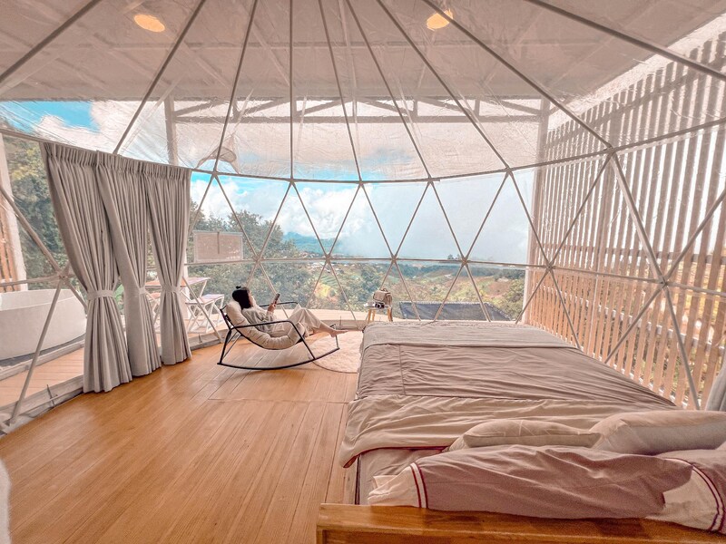 ป๋ายดอย ม่อนแจ่ม เป็นอีกหนึ่งที่พักยอดนิยมบนยอดดอยม่อนแจ่ม ที่มาพร้อมวิวภูเขาเขียวขจีและบรรยากาศสุดโรแมนติก ทำให้ที่นี่เป็นจุดหมายปลายทางที่ใครหลายคนใฝ่ฝันอยากมาสัมผัสความสุขแบบ Slow Life ท่ามกลางธรรมชาติทุกห้องพักถูกออกแบบมาให้คุณได้ชมวิวภูเขาเขียวขจีได้อย่างเต็มตา โดยเฉพาะโดมกระจกที่ให้คุณตื่นมาพร้อมกับแสงอาทิตย์ยามเช้าและทะเลหมอกเบื้องหน้านอกจากการพักผ่อนแล้ว ที่นี่ยังมีกิจกรรมให้ทำมากมาย เช่น การเดินป่าชมธรรมชาติ การถ่ายรูปสวยๆ หรือจะนั่งจิบกาแฟชมวิวก็เพลินไม่น้อยเลยล่ะค่ะ