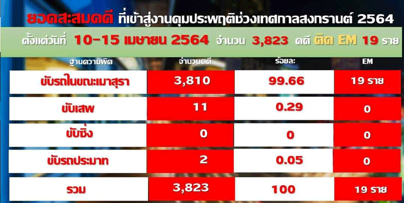 สถิติคดีเมาขับ6วันสงกรานต์กว่า3พัน