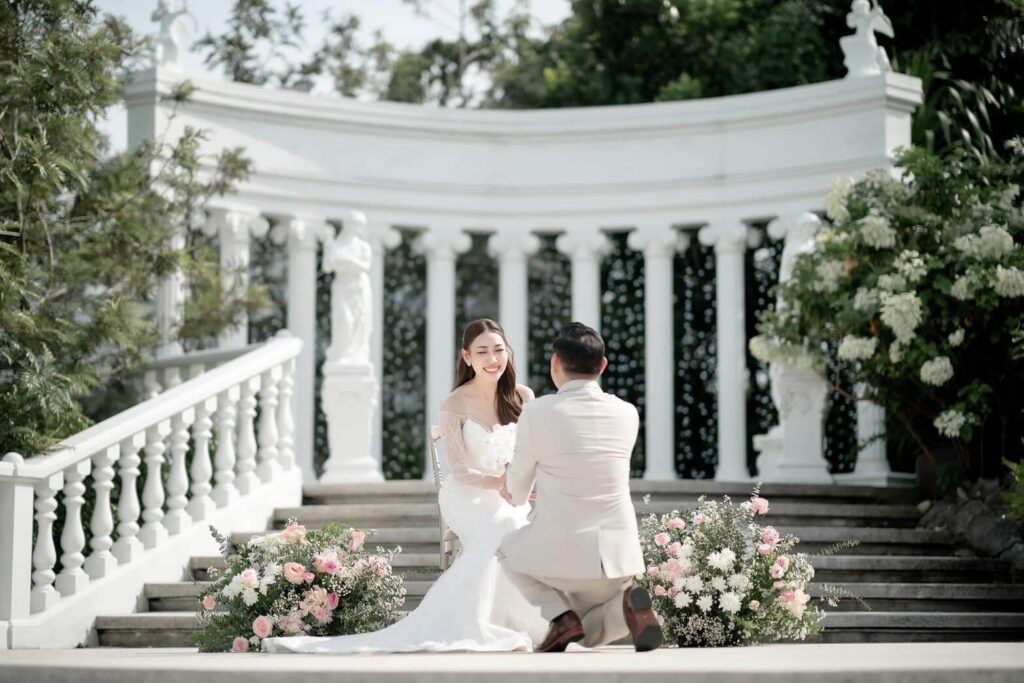 โพธาลัย แบงค็อก พิถีพิถันในทุกการออกแบบเพื่อรังสรรค์สถานที่จัดงานแต่งงานที่อบอวลไปด้วยความโรแมนติก โดดเด่นด้วยบรรยากาศกลางแจ้งสไตล์ยุโรป พร้อมสถาปัตยกรรมตะวันตก ทั้งเสาปูนปั้นที่สะท้อนความคลาสสิก โอบล้อมด้วยต้นไม้เขียวขจี น้ำตก 7 ชั้นที่ไหลลดหลั่นลงสู่สระน้ำสร้างบรรยากาศที่อบอุ่นให้แขกทุกคนที่มาร่วมงาน