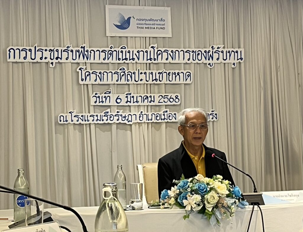 โดยเมื่อวันที่ 5 มีนาคม 68 ได้เข้าเยี่ยมคารวะและหารือความร่วมมือระหว่างกองทุนสื่อ กับภาคีในพื้นที่กับนายทรงกลด สว่างวงศ์ ผู้ว่าราชการจังหวัดตรังทั้งนี้ เพื่อยกระดับบทบาทของกองทุนในการพัฒนาสื่อปลอดภัยและสร้างสรรค์ในภูมิภาค ให้มีความเข้มแข็งมากยิ่งขึ้นนอกจากนั้นทางคณะได้ประชุมเพื่อสอบถามผู้รับทุน และลงพื้นที่ติดตามโครงการ กระบวนการทำงาน ที่ได้รับทุนจากกองทุนพัฒนาสื่อปลอดภัยและสร้างสรรค์ ทั้งโครงการ เสียงจากทะเล , ศิลปะบนชายหาด และโครงการมัคคุเทศก์น้อย
