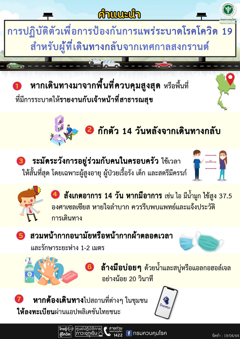 การปฏิบัติตัวเพื่อการป้องกันการแพร่ระบาดของเชื้อไวรัสโควิด-19 สำหรับผู้ที่เดินทางกลับจากเทศกาลสงกรานต์