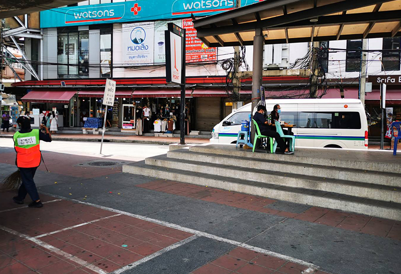 อนุสาวรีย์ชัยฯเงียบ ร้านค้าเปิดปกติแต่ไร้คนซื้อ ขณะที่จำนวนผู้ใช้บริการขนส่งสาธารณะก็ลดลงเช่นกัน ด้านประชาชนเข้มป้องกันโควิด-19 ใส่หน้ากากอนามัย100%