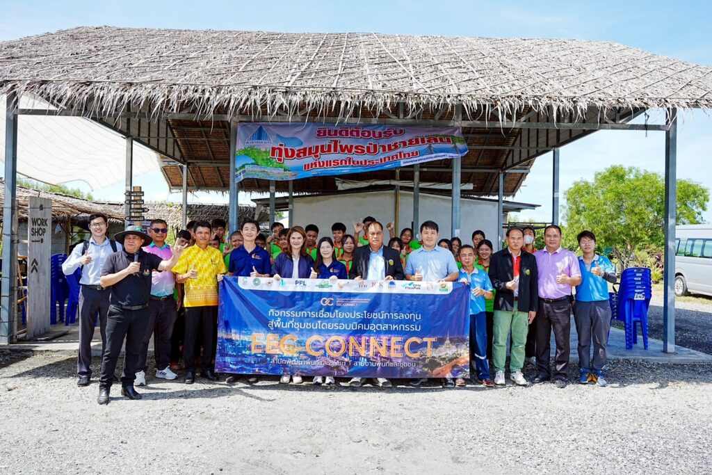 เมื่อเร็ว ๆ นี้ สำนักงานคณะกรรมการนโยบายเขตพัฒนาพิเศษภาคตะวันออก (สกพอ.) จัดกิจกรรม “EEC Connect” ณ ทุ่งสมุนไพรป่าชายเลน นิคมอุตสาหกรรมบลูเทค ซิตี้ ตำบลเขาดิน อำเภอบางปะกง จังหวัดฉะเชิงเทรา โดยมี ดร.ดารินันท์ นันทวงค์ รองผู้อำนวยการและรักษาการผู้อำนวยการสำนักพัฒนาพื้นที่และชุมชน 1 (LCD1) และคณะทำงาน พร้อมด้วย คุณปุณยวิชญ์ ฝูงทองเจริญ ผู้จัดการโครงการนิคมอุตสาหกรรมฉะเชิงเทราบลูเทค ซิตี้ นายพิสิษฐ์ ประเสริฐศรี นายกองค์การบริหารส่วนตำบลเขาดิน พ.จ.อ.ณรงค์ นกอิ่ม ปลัดองค์การบริหารส่วนตำบลเขาดิน อาจารย์ธนินท์ ศิริวรรณ นักวิชาการอิสระ นางสาวสายรุ้ง เกิดแก้ว ประธานวิสาหกิจชุมชนภูมิปัญญาพื้นบ้านธารสายชล และนายกิตติทัศน์ ประเสริฐศรี ผู้ใหญ่บ้านหมู่ที่ 5 ตำบลเขาดิน ประธานวิสาหกิจชุมชนบ้านต้นกรอก เข้าร่วมกิจกรรม โดยมีวัตถุประสงค์เพื่อบูรณาการความร่วมมือระหว่างภาคอุตสาหกรรม ชุมชน และหน่วยงานพันธมิตร พร้อมยกระดับศักยภาพพื้นที่ชุมชนโดยรอบนิคมอุตสาหกรรมให้เติบโตอย่างสมดุลและสอดคล้องกับการพัฒนาเศรษฐกิจอย่างยั่งยืน