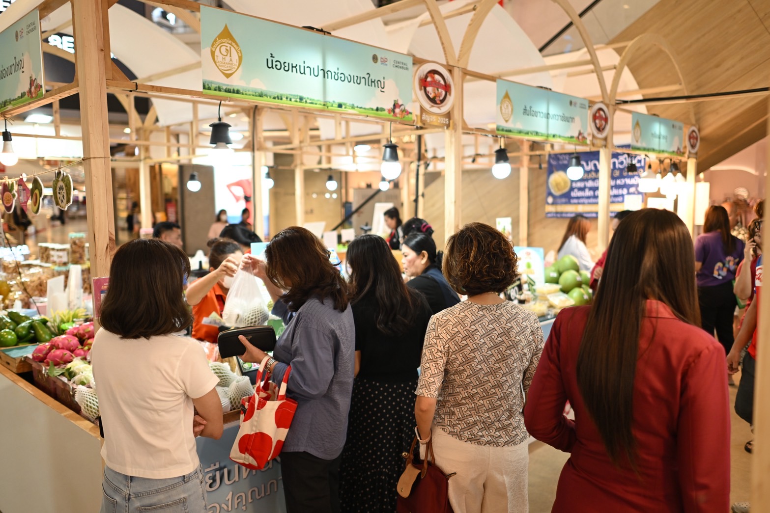 ที่สำคัญกรมทรัพย์สินทางปัญญายังเดินหน้าส่งเสริมการตลาด ยกระดับสินค้า GI ผ่านการพัฒนาบรรจุภัณฑ์ และการแปรรูป รวมถึงการขยายช่องทางการตลาดให้กับสินค้า GI ทั้งในและต่างประเทศ เพื่อสร้างรายได้เพิ่มให้กับผู้ผลิต ผู้ประกอบการสินค้า GI และสร้างการรับรู้เกี่ยวกับสินค้า GI ในวงกว้าง ซึ่งการจัดงาน GI Market สัญจร 2025 ในครั้งนี้ ถือเป็นส่วนหนึ่งของการส่งเสริมช่องทางการตลาด ที่จะช่วยสร้างโอกาส สร้างรายได้ให้กับผู้ผลิตผู้ประกอบการ GI อีกทั้งยังเป็นการสร้างการรับรู้ให้กับผู้บริโภค และได้เลือกซื้อสินค้า GI ที่ส่งตรงจากแหล่งผลิตจากทุกภูมิภาคกว่า 30 ร้านค้า เช่น ข้าวเหนียวเขาวงกาฬสินธุ์ ปลากะพงสามน้ำทะเลสาบสงขลา พริกไทยจันท์ ทุเรียนป่าละอู ส้มโอขาวแตงกวาชัยนาท ชาเชียงราย กาแฟเทพเสด็จ น้ำตาลโตนดเมืองเพชร มะพร้าวน้ำหอมบางคล้า ผ้าครามธรรมชาติสกลนคร เป็นต้น