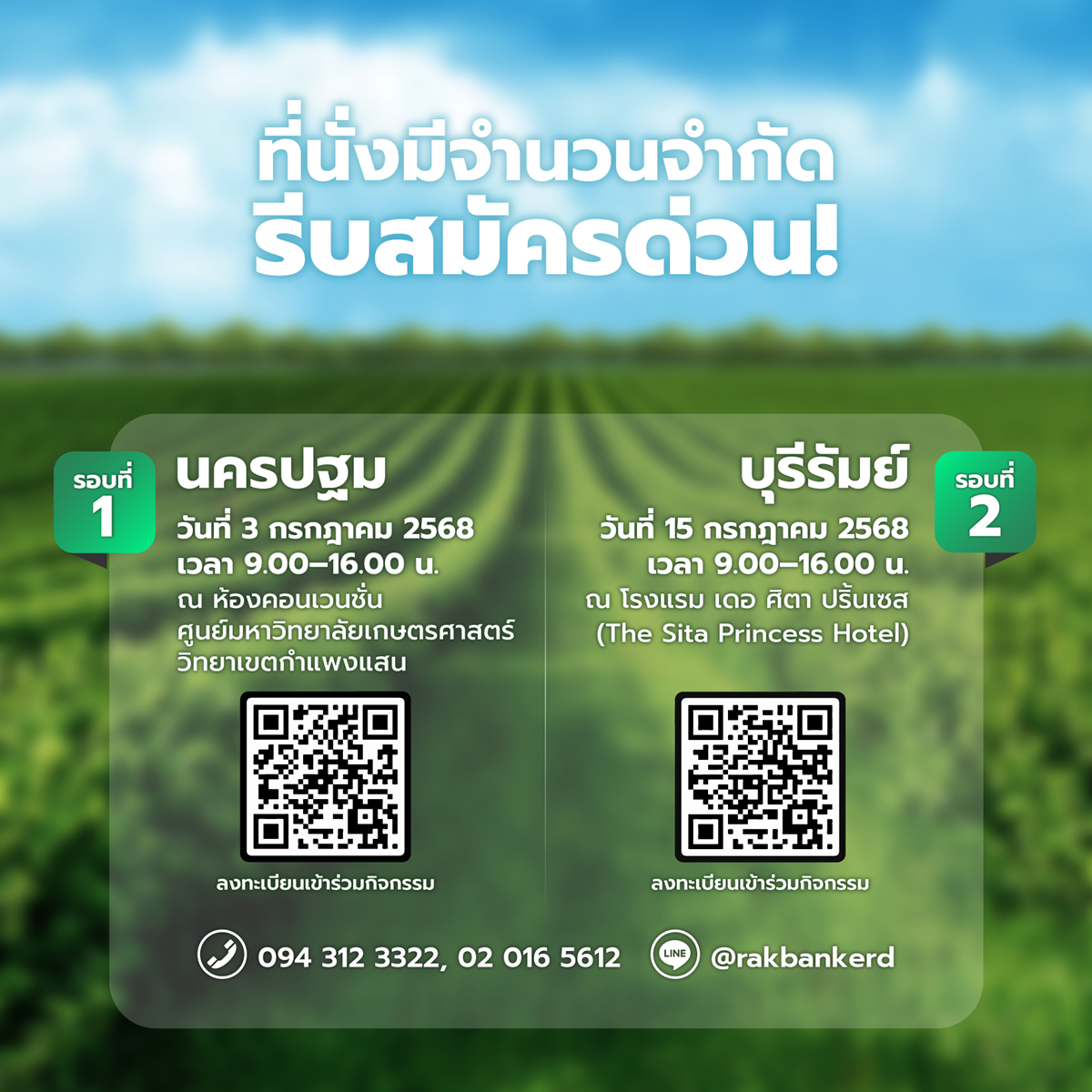 - ครั้งที่ 2: วันอังคารที่ 15 กรกฎาคม 2568 เวลา 09.00 – 16.00 น. ณ โรงแรม The Sita Princess จังหวัดบุรีรัมย์