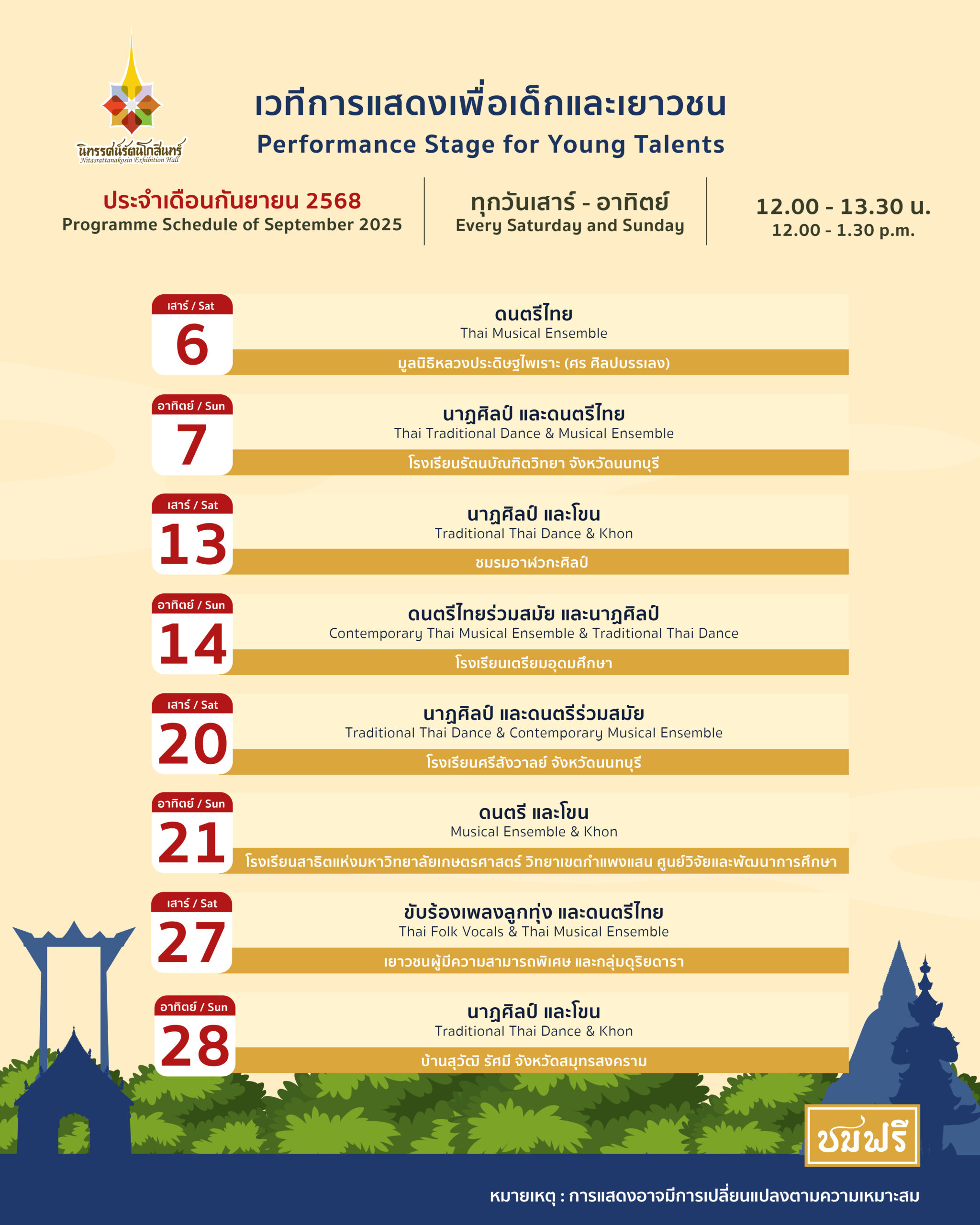 เวทีการแสดงเพื่อเด็กและเยาวชน นิทรรศน์รัตนโกสินทร์ เดือนกันยายน 2568
