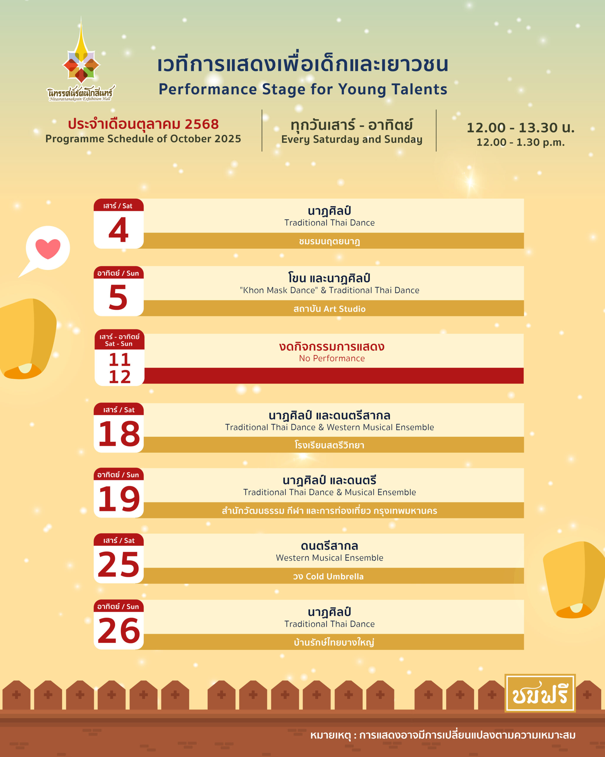 เวทีการแสดงเพื่อเด็กและเยาวชน นิทรรศน์รัตนโกสินทร์ เดือนตุลาคม
