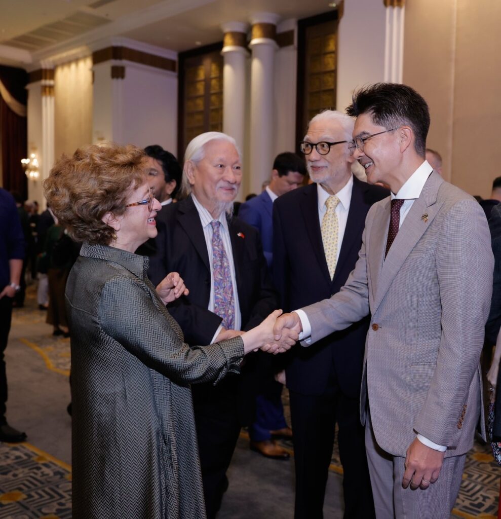 โดยในงานมีเอกอัครราชทูตร่วมยินดีมากมาย อาทิโรเบิร์ต เอฟ. โกเดค เอกอัครราชทูตสหรัฐอมริกา เปาโล ดีโอนีซีเอกอัครราชทูตอิตาลี เยฟกินี โทมิคินเอกอัครราชทูตรัสเซีย นาเกศ ซิงห์ เอกอัครราชทูตอินเดีย ดานิเอล เอมิลิโอ เมนโดซา เลอัล เอกอัครราชทูตโคลอมเบียเปโดร ปาโบล ซาน ฮอร์เฮ โรดริเกซเอกอัครราชทูตคิวบา ซีเร่ย์ เดนนิเซ อากิลาร์เอกอัครราชทูตกัวเตมาลา ร่วมด้วยผู้แทนกระทรวงต่างประเทศสมาชิกกงสุลกิตติมศักดิ์ อาทิ ณพ ณรงค์เดช กงสุลฯเม็กซิโกม.ล.ปรียาพรรณ ศรีธวัชกงสุลใหญ่ฯ เปรู เชียงใหม่ จักร จามิกรณ์ กงสุลใหญ่ฯ นิการากัว ปณิธิ วสุรัตน์ กงสุลฯไซปรัส