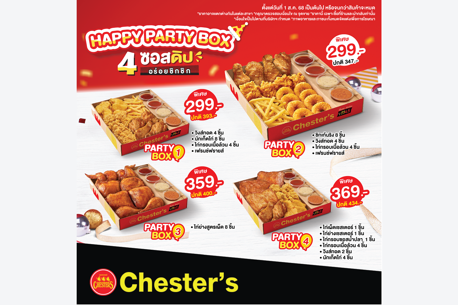 จากข้อมูลเชิงพฤติกรรมของเชสเตอร์พบว่า ลูกค้ามีแนวโน้มเลือกเมนูที่รับประทานและแชร์ร่วมกันได้มากขึ้น รวมถึงให้ความสำคัญกับความคุ้มค่า ความสะดวก และรสชาติที่คุ้นเคยแต่มีความพิเศษเพิ่มขึ้นในช่วงเทศกาล เมนูใหม่และชุด Party Box ของเชสเตอร์จึงถูกออกแบบมาเพื่อตอบโจทย์ช่วงเวลานี้โดยเฉพาะ