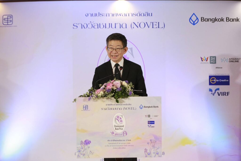 ดร.กอบศักดิ์ ภูตระกูล กรรมการรองผู้จัดการใหญ่ ธนาคารกรุงเทพ จำกัด (มหาชน) กล่าวว่า ธนาคารกรุงเทพ มีความยินดีเป็นอย่างยิ่งที่ได้ต้อนรับทุกท่านเข้าสู่การประกาศผลการตัดสิน “รางวัลชมนาด” ในปีนี้เป็นการจัดงานอย่างต่อเนื่องมาเป็นปีที่ 14 แล้ว รางวัลชมนาด (Chommanard Book Prize) เป็นอีกหนึ่งกิจกรรมสำคัญที่สะท้อนถึงความมุ่งมั่นของธนาคารกรุงเทพ ในการสนับสนุนการพัฒนาทางวัฒนธรรมและศิลปะ โดยเฉพาะอย่างยิ่งในด้านวรรณกรรม “รางวัลชมนาด” ถือเป็นเวทีอันทรงคุณค่าที่เปิดโอกาสให้นักเขียนหญิงไทย ได้แสดงพลังของความคิดและจินตนาการ ถ่ายทอดเรื่องราวผ่านตัวอักษรที่เปี่ยมด้วยคุณค่า ไม่เพียงแต่ในแวดวงวรรณกรรมไทย แต่ยังมุ่งหวังที่จะก้าวสู่ระดับสากล ซึ่งเป็นอีกหนึ่งก้าวสำคัญในการเปิดประตูสู่เวทีโลก และยกระดับผลงานของนักเขียนไทยให้เป็นที่รู้จักในวงกว้าง