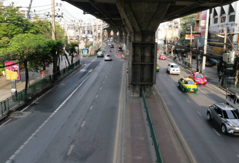 ขณะที่ บรรยากาศการจราจรในบริเวณถนนสุขุมวิท ขาเข้ากรุงเทพมหานคร จาก จ.สมุทรปราการ ภายหลังจากที่ศูนย์บริหารสถานการณ์ การแพร่ระบาดของโรคติดเชื้อไวรัสโคโรน่า 2019 (โควิด-19) (ศบค.) ได้มีมติขอความร่วมมือองค์กรทั้งภาครัฐและเอกชน ร่วมกันทำงานที่บ้าน เพื่อลดการแพร่กระจายของเชื้อไวรัสโควิด-19 เมื่อวันที่29 เมษายนที่ผ่านมา ทำให้วันที่ 5 พฤษภาคม เป็นวันแรกของการทำงาน จึงทำให้เห็นว่ามาตราการของศบค.ค่อนข้างที่จะได้รับความร่วมมือ เพราะจะเห็นได้จากจำนวนรถบนท้องถนนที่วิ่งเข้ากรุงเทพฯ มีน้อยลง ทำให้ไม่เกิดการจราจรติดขัดเหมือนช่วงเวลาปกติ