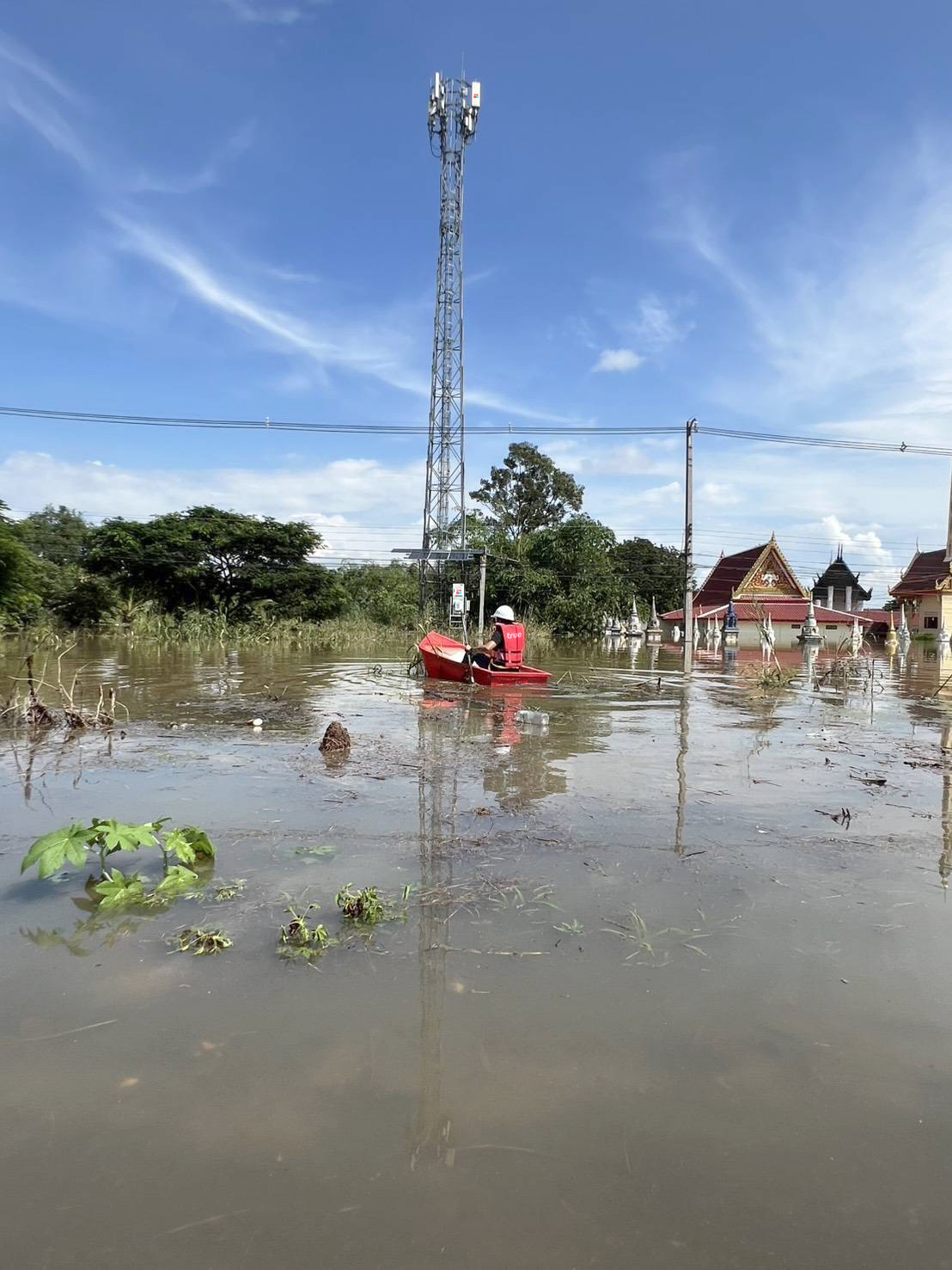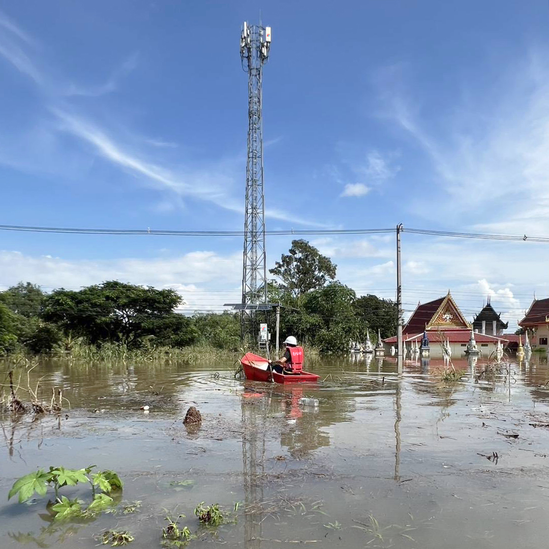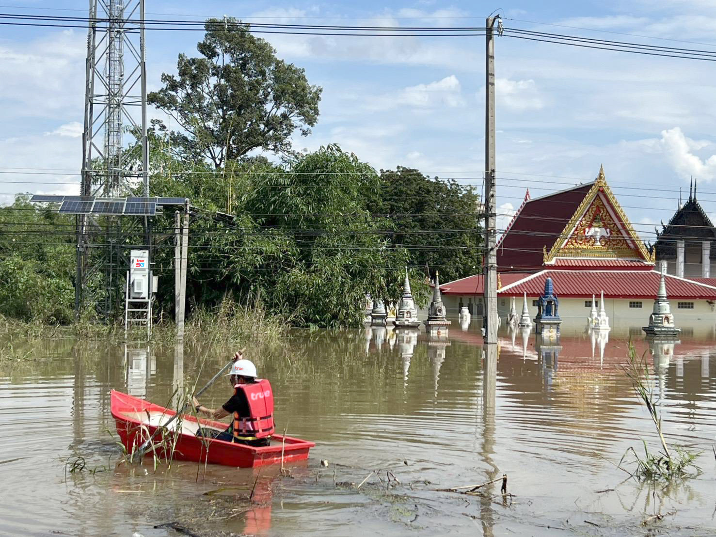 ทรู คอร์ปอเรชั่น ได้ส่งทีมเน็ตเวิร์กลงสำรวจสถานีฐานในพื้นที่เสี่ยงหลายจังหวัดภาคกลางที่ยังคงประสบน้ำท่วมต่อเนื่อง โดยเฉพาะในจังหวัดสิงห์บุรี ซึ่งเมื่อวันที่ 12 พฤศจิกายนที่ผ่านมา เกิดเหตุพนังกั้นน้ำพังทลายบริเวณอำเภออินทร์บุรี ส่งผลให้น้ำทะลักเข้าท่วมพื้นที่เพิ่มเติม ทีมเน็ตเวิร์กของทรูจึงนำเรือเข้าตรวจสอบสถานีฐานใกล้วัดดอกไม้ สิงห์บุรีที่น้ำท่วมสูง พบว่าอุปกรณ์สื่อสารหลักยังคงทำงานได้ตามปกติ แต่เพื่อความมั่นใจจึงได้ยกระดับมาตรการด้านความปลอดภัยระบบไฟฟ้า และได้ประสานการไฟฟ้าภูมิภาคเข้าดูแล เพื่อป้องกันผลกระทบไฟรั่วต่างๆ หากระดับน้ำยังคงเพิ่มสูงขึ้น