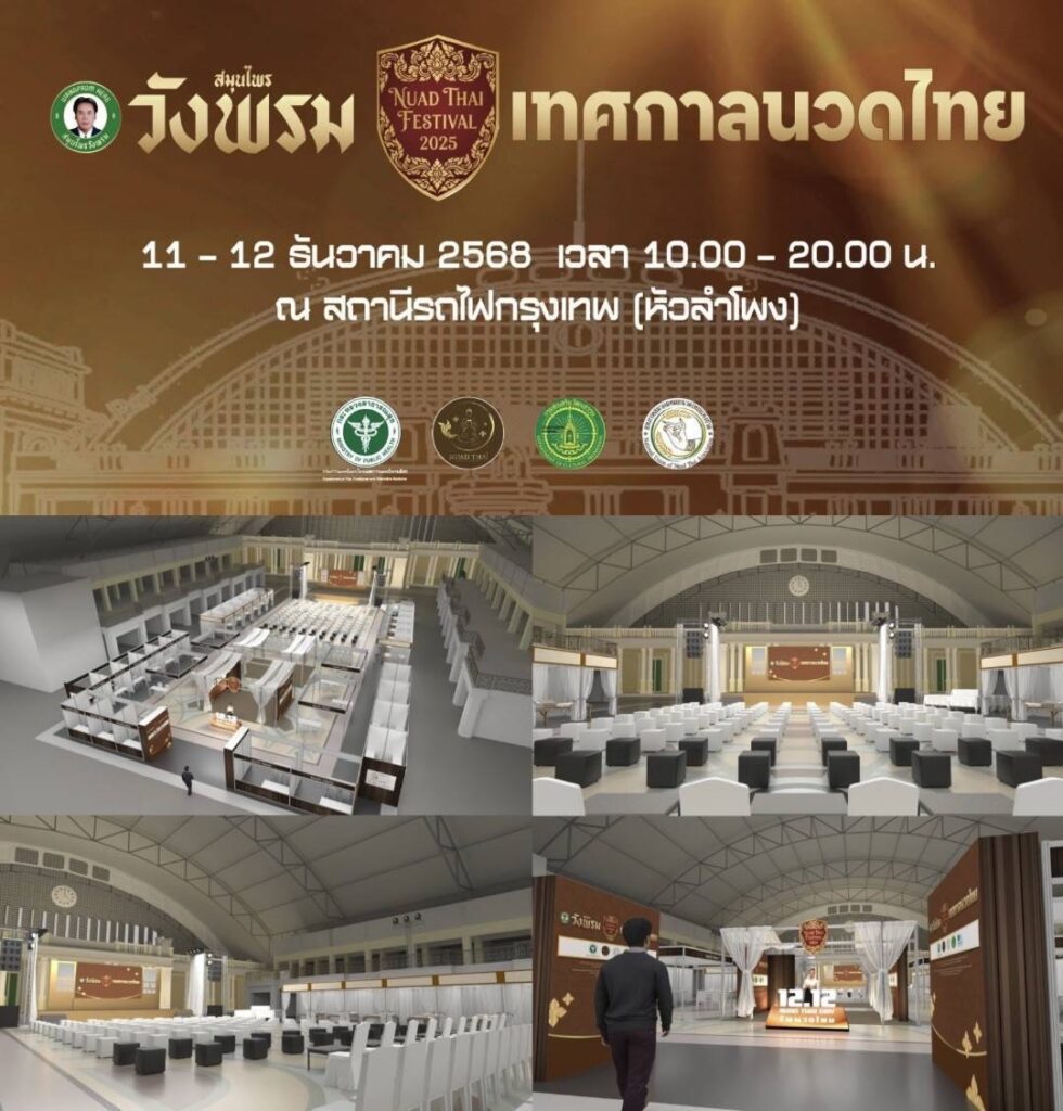 พลาดไม่ได้! เทศกาลนวดไทย 2568 ระหว่างวันที่ 11 – 12 ธันวาคม 2568 เวลา 10.00 – 20.00 น. ณ สถานีรถไฟกรุงเทพ(หัวลำโพง) สนใจรายละเอียดติดต่อ โทร. 065 691 1459