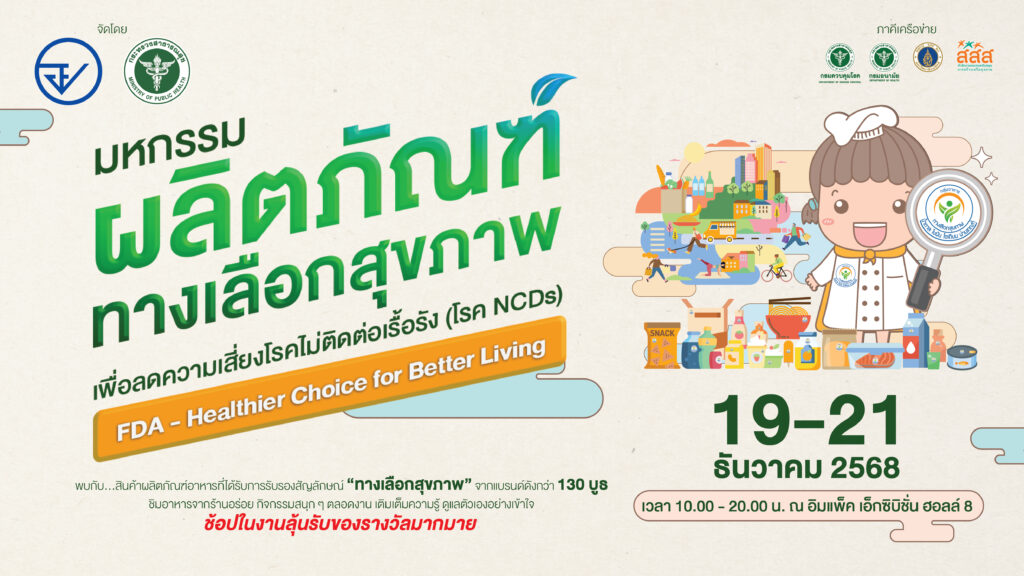 งานมหกรรมผลิตภัณฑ์ทางเลือกสุขภาพ (Healthier Choice Expo) ที่ อย. ตั้งใจจัดขึ้นในระหว่างวันที่ 19-21 ธันวาคม 2568 ณ อิมแพ็ค เอ็กซิบิชั่น ฮอลล์ 8 เมืองทองธานี เพื่อให้ประชาชนเข้าถึงข้อมูลสุขภาพที่ถูกต้อง และเลือกซื้อผลิตภัณฑ์อาหารที่ดีต่อสุขภาพได้ง่ายขึ้น ผ่านสัญลักษณ์โภชนาการ ‘ทางเลือกสุขภาพ’ ซึ่งเป็นตัวช่วยสำคัญในการตัดสินใจเลือกผลิตภัณฑ์ที่ผ่านการตรวจสอบแล้วว่า มีปริมาณน้ำตาล ไขมัน และโซเดียม อยู่ในเกณฑ์ที่เหมาะสม งานนี้จึงเป็นอีกก้าวหนึ่งในการร่วมกันสร้างสังคมไทยที่แข็งแรง ลดความเสี่ยงการเกิดโรค NCDs และยกระดับคุณภาพชีวิตของประชาชน