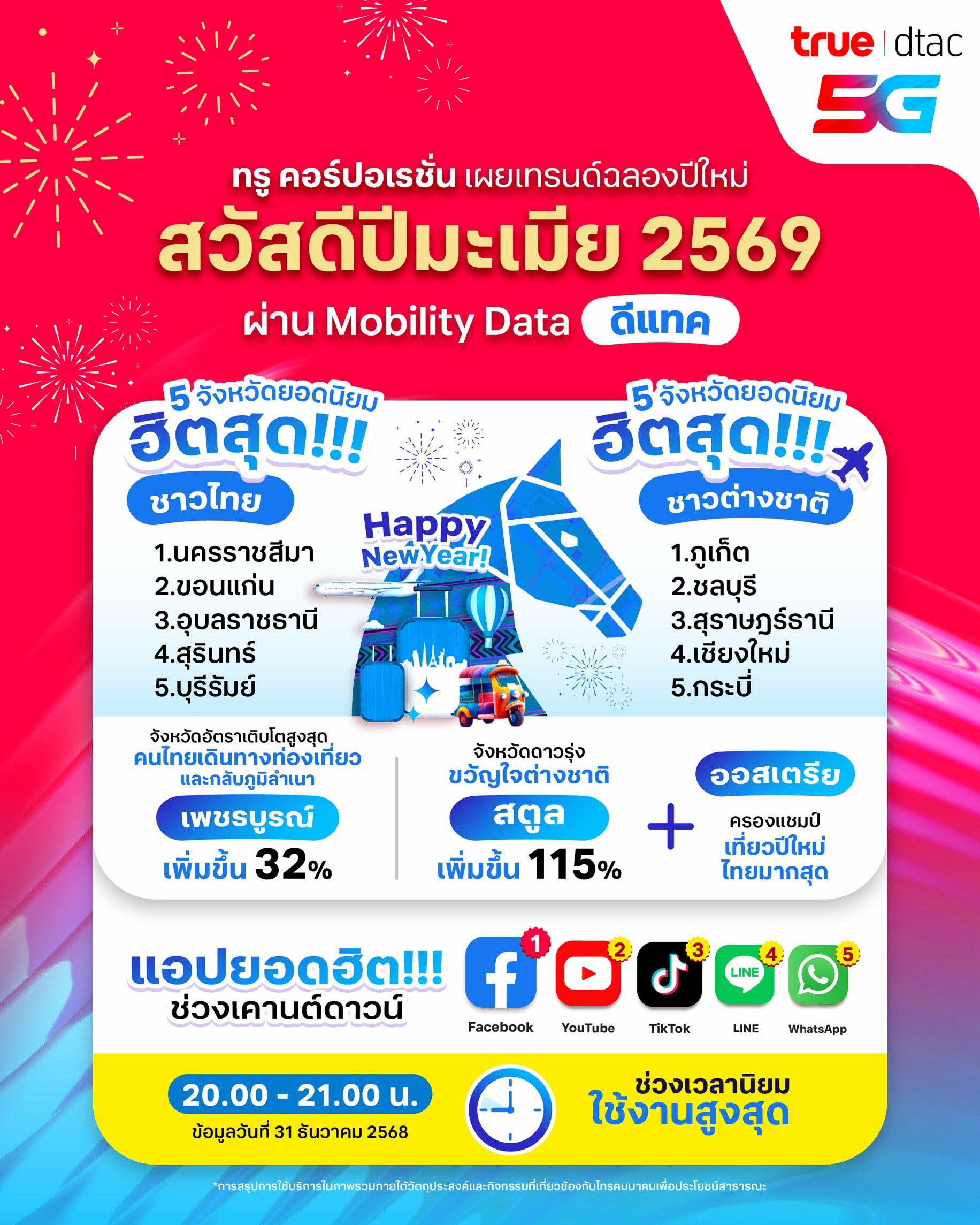 สถิติจากการใช้งานมือถือแบรนด์ “ดีแทค” ช่วงเทศกาลต้อนรับปีใหม่ 2569