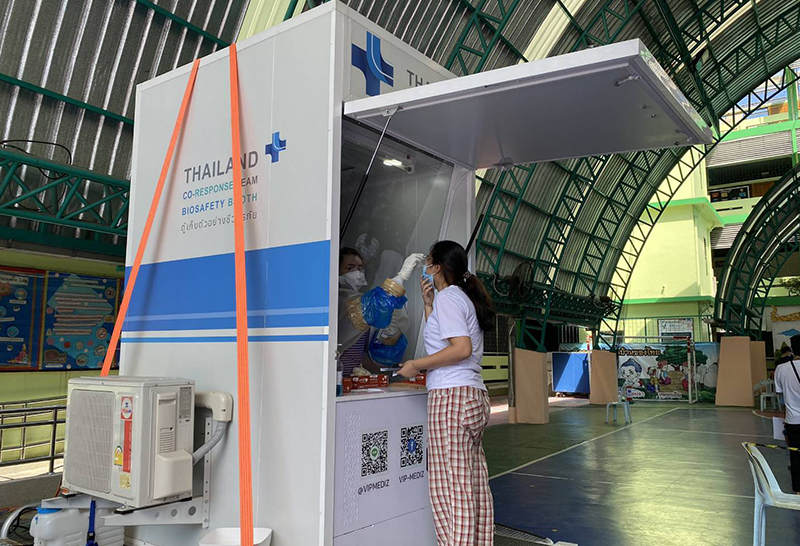โดยในวันนี้ สำนักงานเขตดุสิต ร่วมกับศูนย์บริการสาธารณสุข 6 สโมสรวัฒนธรรมหญิง ศูนย์บริการสาธารณสุข 15 และ 33 กรมควบคุมโรค กระทรวงสาธารณสุข จัดหน่วยเคลื่อนที่ให้บริการเชิงรุกเก็บตัวอย่างส่งตรวจหาเชื้อโควิด-19 โดยนำรถพระราชทานเก็บตัวอย่างชีวนิรภัย จำนวน 2 คัน ทำการตรวจคัดกรองโควิด-19 ด้วยวิธีการตรวจหาเชื้อทางโพรงจมูก (SWAB) แก่ประชาชนในชุมชน ได้แก่ ชุมชนหลังบ้านมนังคสิลา และชุมชนวัดญวน-คลองลำปัก ชุมชนริมทางรถไฟสายแปดริ้ว และชุมชนวัดโสมนัส เขตป้อมปราบศัตรูพ่าย รวมทั้งผู้พักอาศัยบริเวณชุมชนโดยรอบ จำนวน 500 คน ณ บริเวณชั้นล่าง โรงแรมแอมบาสเดอร์ ตลาดสะพานขาวทรัพย์สินพัฒนา เขตดุสิต ในส่วนพื้นที่เขตคลองเตยดำเนินการตรวจหาเชื้อด้วยวิธี SWAB จำนวน 3 จุด ได้แก่ บริเวณโรงเรียนชุมชนหมู่บ้านพัฒนา ชุมชนแฟลต 9-22 และตลาดคลองเตย นอกจากนี้ ยังมีจุดตรวจ SWAB ในพื้นที่เขตปทุมวัน บริเวณศูนย์สร้างสุขทุกวัย บ่อนไก่ ทำการตรวจคัดกรองหาเชื้อโควิด-19 ให้กับประชาชนในชุมชนพัฒนาบ่อนไก่ ชุมชนเคหะบ่อนไก่ ชุมชนโปโล ชุมชนพระเจน ชุมชนร่วมฤดีและชุมชนกุหลาบแดง