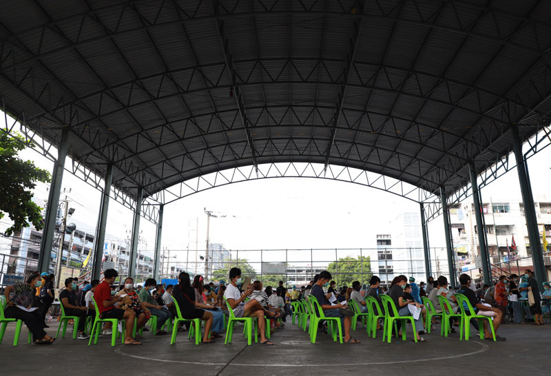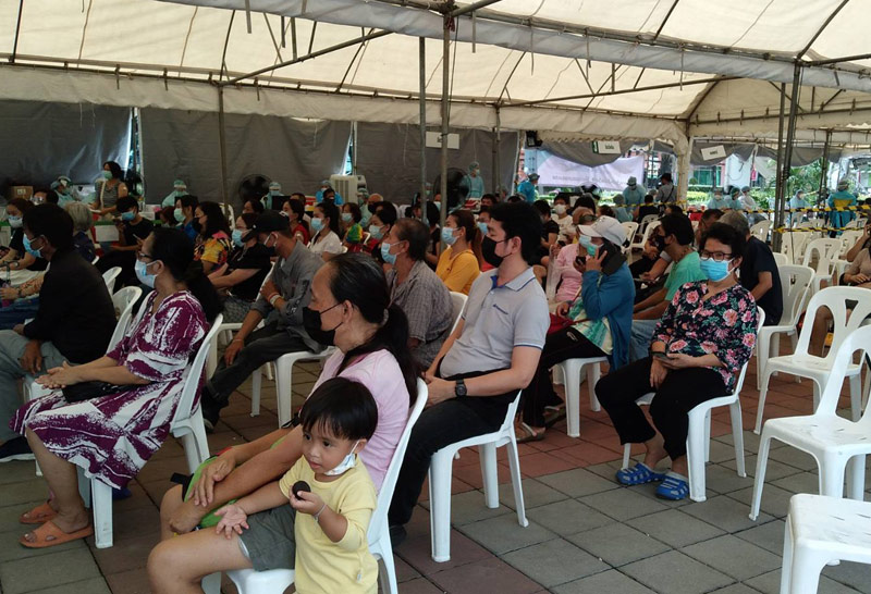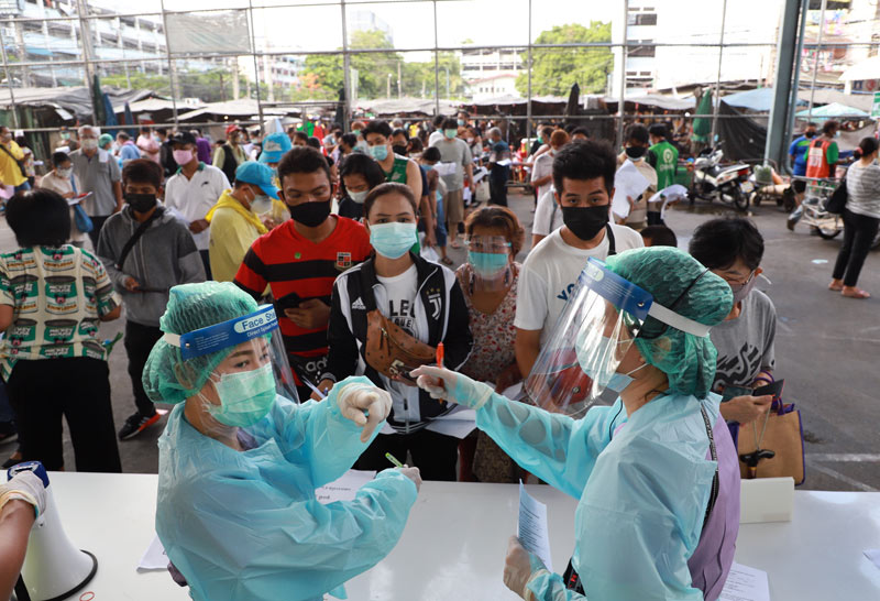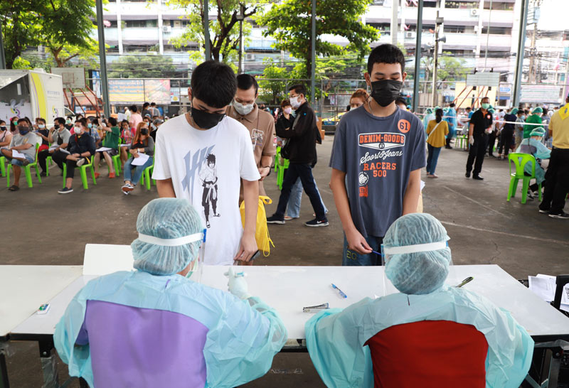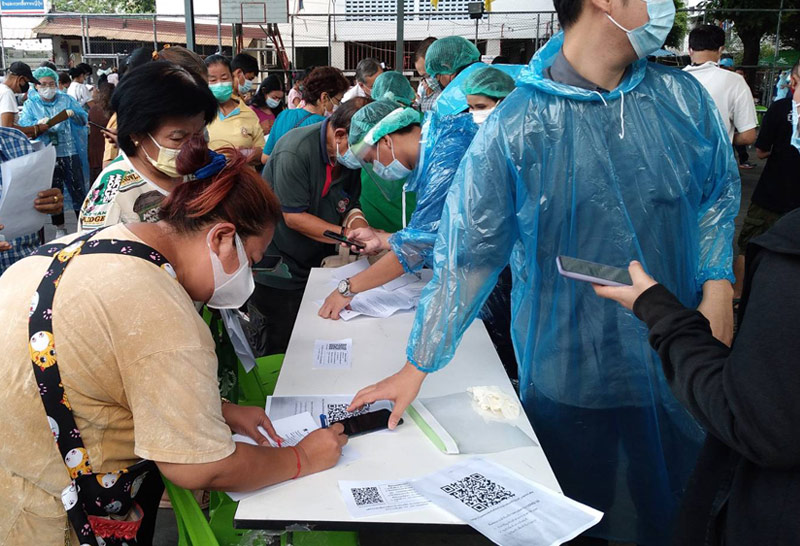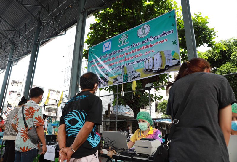 ประชาชนชาวแฟลตดินแดงทยอยเข้ารับการตรวจคัดกรองหาเชื้อ โควิด-19 ขณะเจ้าหน้าที่ตั้งเป้าตรวจให้ได้ 1,000 คนในวันนี้