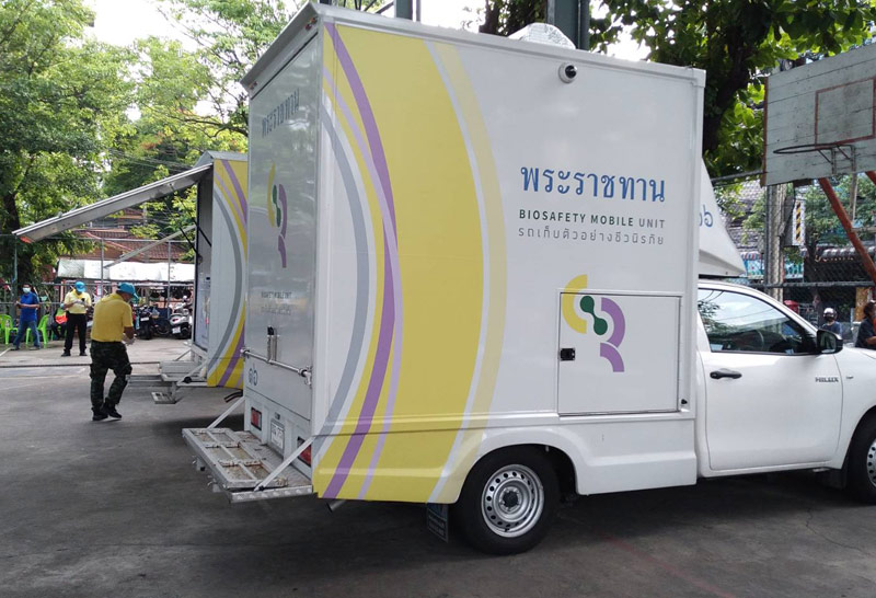 ทั้งนี้ จากการสอบถามเจ้าหน้าที่ประจำจุดตรวจทราบว่า การตรวจในวันนี้ตั้งเป้าว่าจะดำเนินการตรวจประชาชนให้ได้ประมาณ 1,000 คน แต่หากไม่เพียงพอก็จะมีการจัดตั้งเพิ่มเติมอีก เบื้องต้นจะดำเนินการตรวจคัดกรองให้ได้มากที่สุด สำหรับการตั้งจุดตรวจในวันนี้ได้มีการแบ่งพื้นที่ออกเป็นจุด ๆ จุดแรกเป็นจุดสแกนคิวอาร์โค้ดกรอกข้อมูลส่วนตัวและกดเซฟหน้าจอเมื่อได้รหัสโค้ดเพื่อแสดงต่อเจ้าหน้าที่ จุดที่ 2 เป็นจุด ที่นำคิวอาร์โค้ดที่ได้รับไปแสกนลงทะเบียนเพื่อรับคิว จุดที่ 3 จุดตรวจเอกสาร จุดที่4 จดบันทึกข้อมูลในคอมพิวเตอร์ และ จุดที่ 5 จุดเข้ารับการตรวจในรถเก็บตัวอย่างชีวนิรภัยพระราชทาน ซึ่งหลังตรวจประชาชนสามารถเดินทางกลับบ้านได้เลย โดยเจ้าหน้าที่จะส่งผลการตรวจให้ผ่านทาง sms กรณีหากพบผู้ติดเชื้อ ศูนย์เอราวัณจะนำเข้าสู่กระบวนการรักษาทันที