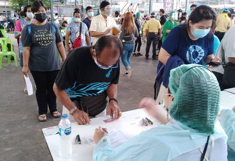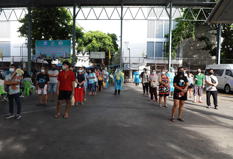 ประชาชนชาวแฟลตดินแดงทยอยเข้ารับการตรวจคัดกรองหาเชื้อ โควิด-19 ขณะเจ้าหน้าที่ตั้งเป้าตรวจให้ได้ 1,000 คนในวันนี้