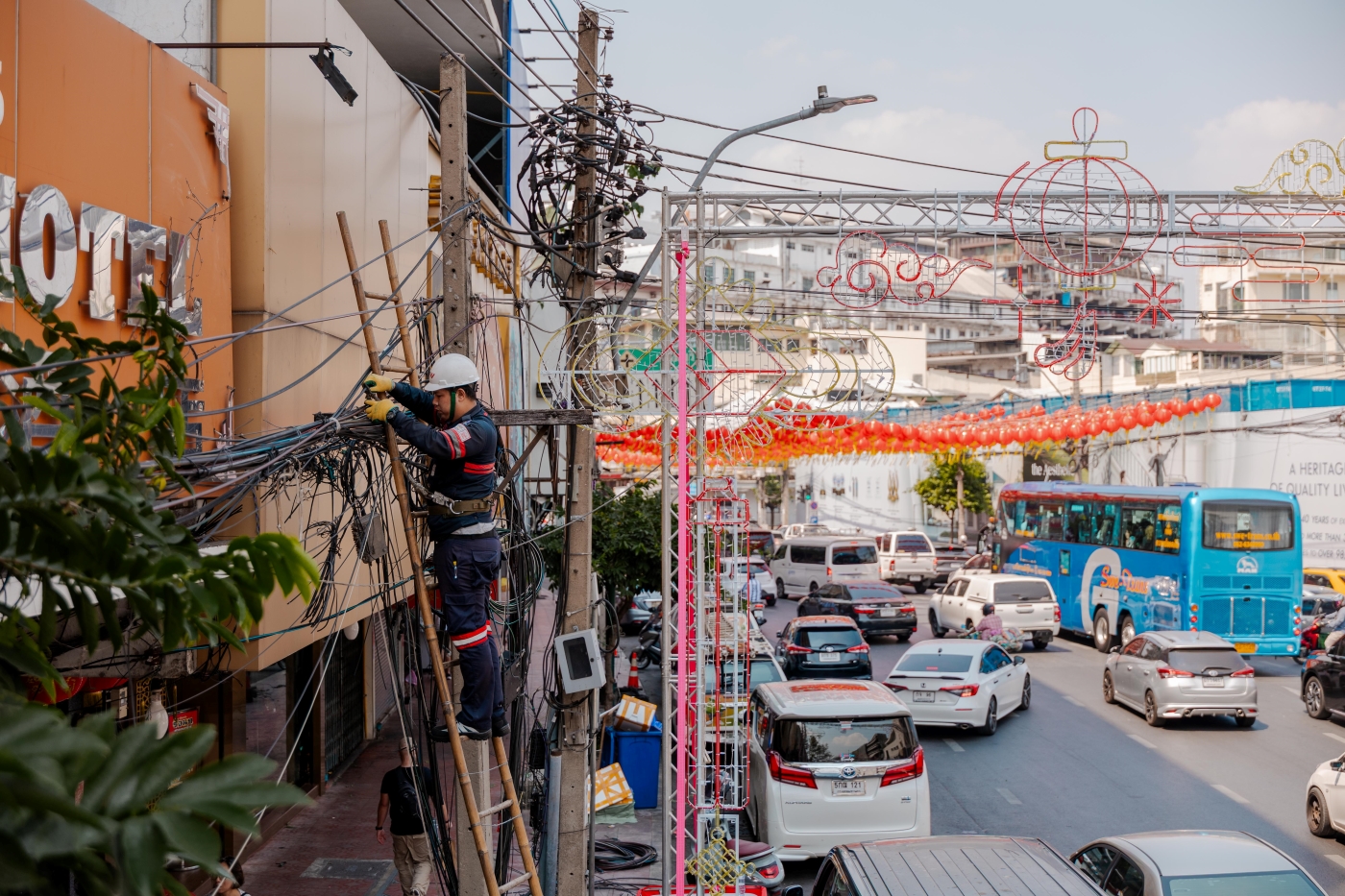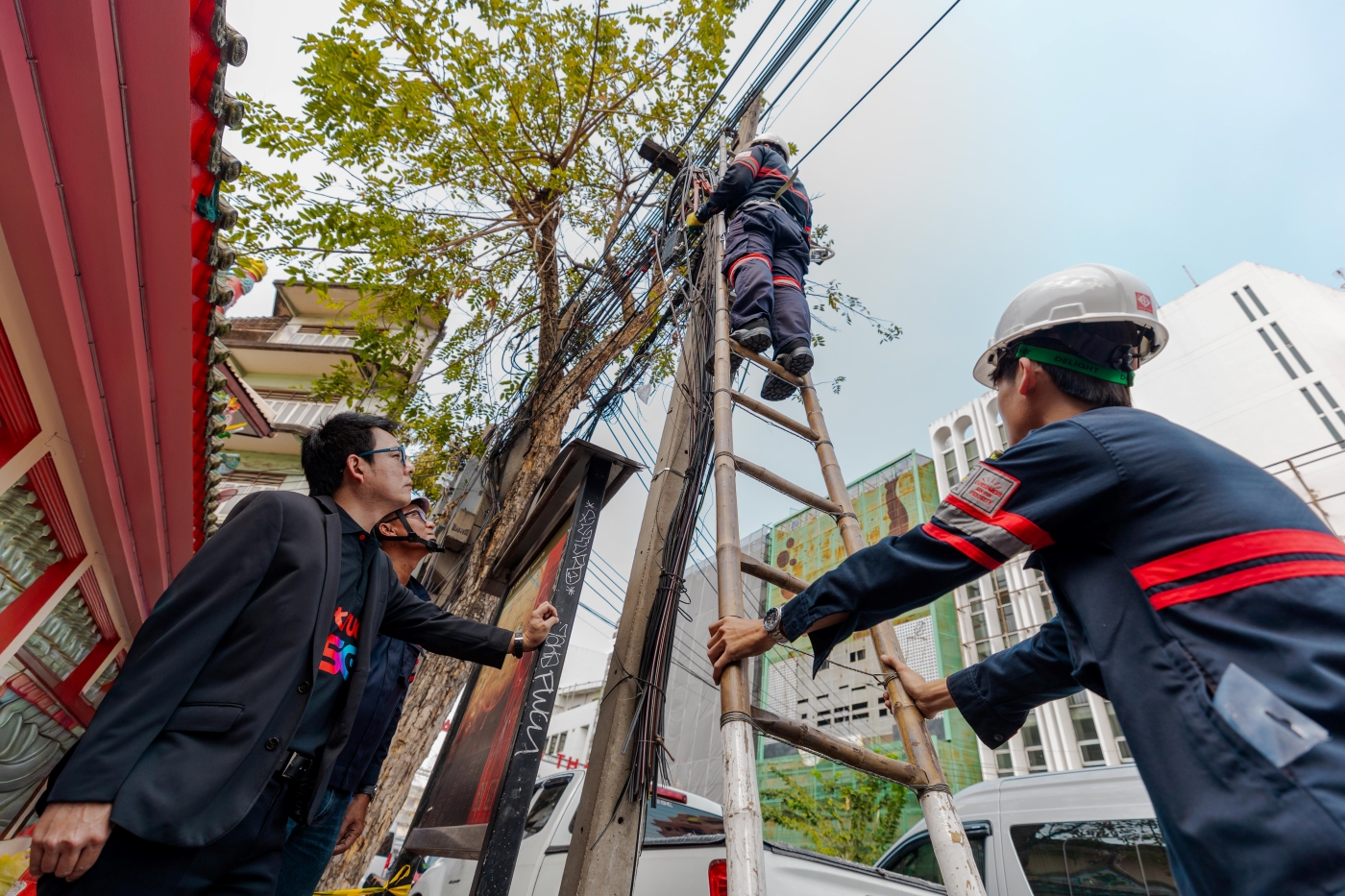 10 กุมภาพันธ์ 2569 กรุงเทพฯ – ทรู คอร์ปอเรชั่น ผนึกความร่วมมือกับ สำนักงานคณะกรรมการกิจการกระจายเสียง กิจการโทรทัศน์ และกิจการโทรคมนาคมแห่งชาติ (กสทช.) และการไฟฟ้านครหลวง (MEA) และพันธมิตร เพื่อร่วมเฉลิมฉลองเทศกาลตรุษจีน เปิดศักราชรับปีม้ามงคล เดินหน้าปฏิบัติการรื้อถอนและนำสายสื่อสารลงใต้ดิน เนรมิตทัศนียภาพของแหล่งท่องเที่ยวสำคัญให้สวยงามและปลอดภัย พร้อมต้อนรับนักท่องเที่ยวจากทั่วทุกมุมโลกในเทศกาลตรุษจีน ปี 2569 โดยได้รับเกียรติจาก นายสุทธิศักดิ์ ตันตะโยธิน (ที่ 4 จากซ้าย) รองเลขาธิการ กสทช. นายราเชนทร์ อันเวช (ที่ 3 จากซ้าย) รองผู้ว่าการเทคโนโลยีดิจิทัลและระบบสื่อสาร การไฟฟ้านครหลวง (MEA) และนายกนกศักดิ์ นิ่มนวลรัตน์ (ที่ 2 จากซ้าย) หัวหน้าฝ่ายรัฐกิจและสาธารณูปโภค บจม.ทรู คอร์ปอเรชั่น นำทีมวิศวกรลงพื้นที่ปฏิบัติการอย่างใกล้ชิด พร้อมติดตามความคืบหน้าและสนับสนุนการดำเนินงานบริเวณพื้นที่ถนนเยาวราช