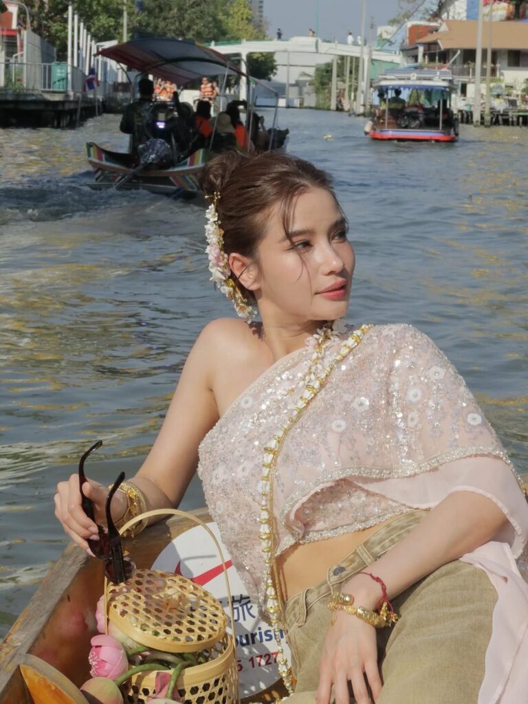 มาช้าแต่มานะ! ‘วิว วรรณรท’ ห่มสไบละมุนกลางกรุง พาเช็กอินแลนด์มาร์กคลาสสิก ‘ตลาดพลู’
