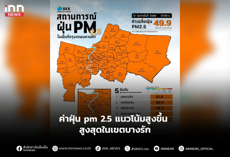 ค่าฝุ่น pm 2.5 แนวโน้มสูงขึ้น สูงสุดในเขตบางรัก