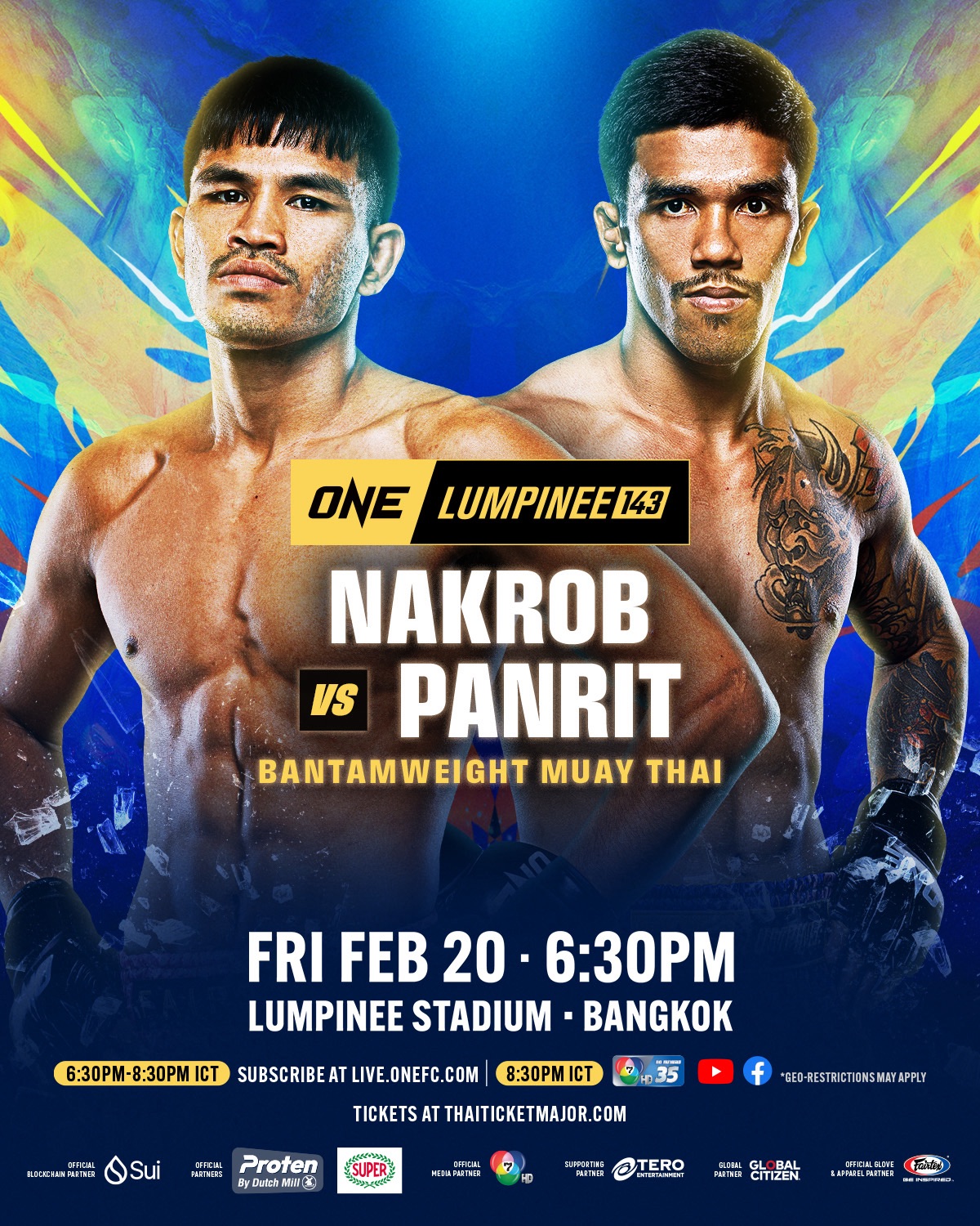 ศึก ONE ลุมพินี 143 เริ่มการแข่งขันคู่แรกเวลา 18.30 น. จองบัตรเข้าชมในสนามได้ทาง THAI TICKET MAJOR