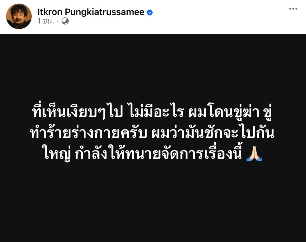 โซเชียลสะเทือน “จ๋าย ไททศมิตร” วอนหยุดอย่าสร้างค่านิยมความรุนแรงในสังคม หลังถูกขู่ทำร้ายร่างกาย ชาวเน็ตเข้ามาคอมเมนต์เป็นห่วงสนั่น