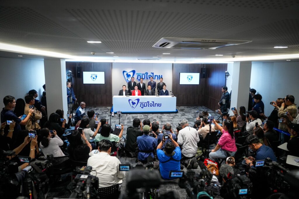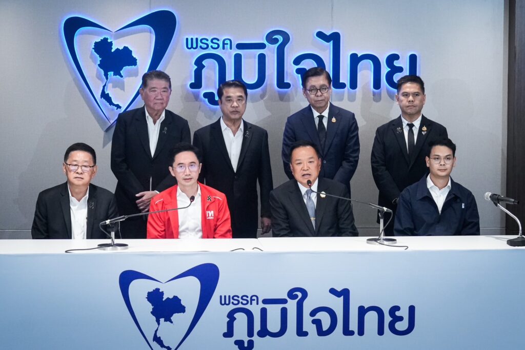 นายอนุทิน ชาญวีรกูล นายกรัฐมนตรีและรัฐมนตรีว่าการกระทรวงมหาดไทยในฐานะหัวหน้าพรรคภูมิใจไทย และ นายยศชนัน วงศ์สวัสดิ์ แคนดิเดตนายกรัฐมนตรีพรรคเพื่อไทย พร้อมแกนนําทั้งสอง ร่วมแถลงข่าว ภายหลังการหารือจัดตั้งรัฐบาล