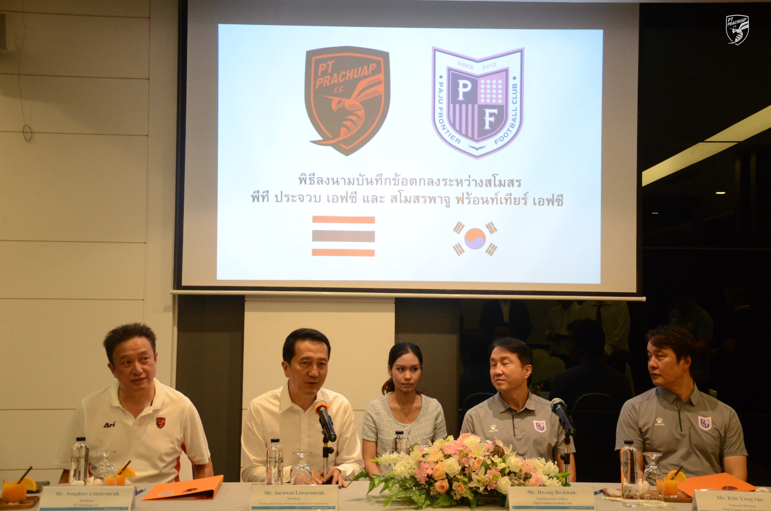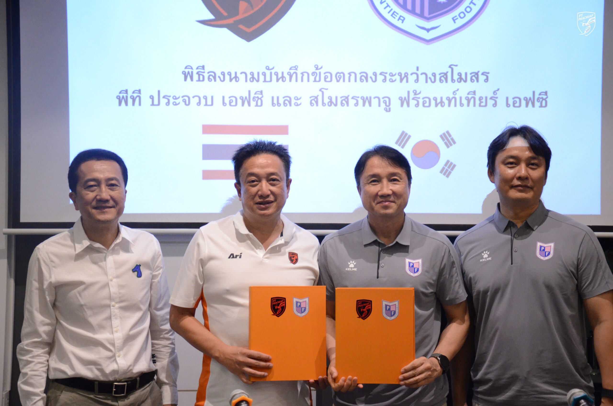 สโมสรฟุตบอล พีที ประจวบ เอฟซี ลงนาม MOU ด้านความร่วมมือทางฟุตบอลกับสโมสร พาจู ฟรอนเทียร์ เอฟซี ทีมในระดับ K League 2 จากสาธารณรัฐเกาหลี เพื่อร่วมกันพัฒนาศักยภาพนักกีฬา บุคลากรโค้ช และกิจกรรมฟุตบอลระหว่างประเทศอย่างยั่งยืน
