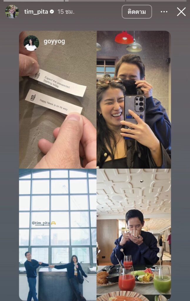 เรียกว่าก่อนหน้านี้ทำเอาแฟนคลับว๊าวแล้วอึ้งตาโตเป็นไข่หานกันสนั่น เมื่อทางด้าน ”ทิม พิธา“ ได้ออกมาประกาศกำลังคบหาดูใจกันนักแสดงสาว ”ก้อย อรัชพร“ เนื่องในวันวาเลนไทน์ โดยทั้งคู่โพสต์ภาพคู่ที่ร่วมโมเมนต์น่ารักด้วยกันลงในไอจีส่วนตัว ท่ามกลางชาวเน็ตต่างเข้ามาแสดงความยินดีกับทั้งคู่ แต่ก็มีชาวเน็ตตั้งข้อสงสัยว่าไปคบกันตอนไหน และมีการแซวจนเกิด #14ล้านเลือกพ่อแต่พ่อเลือกก้อย