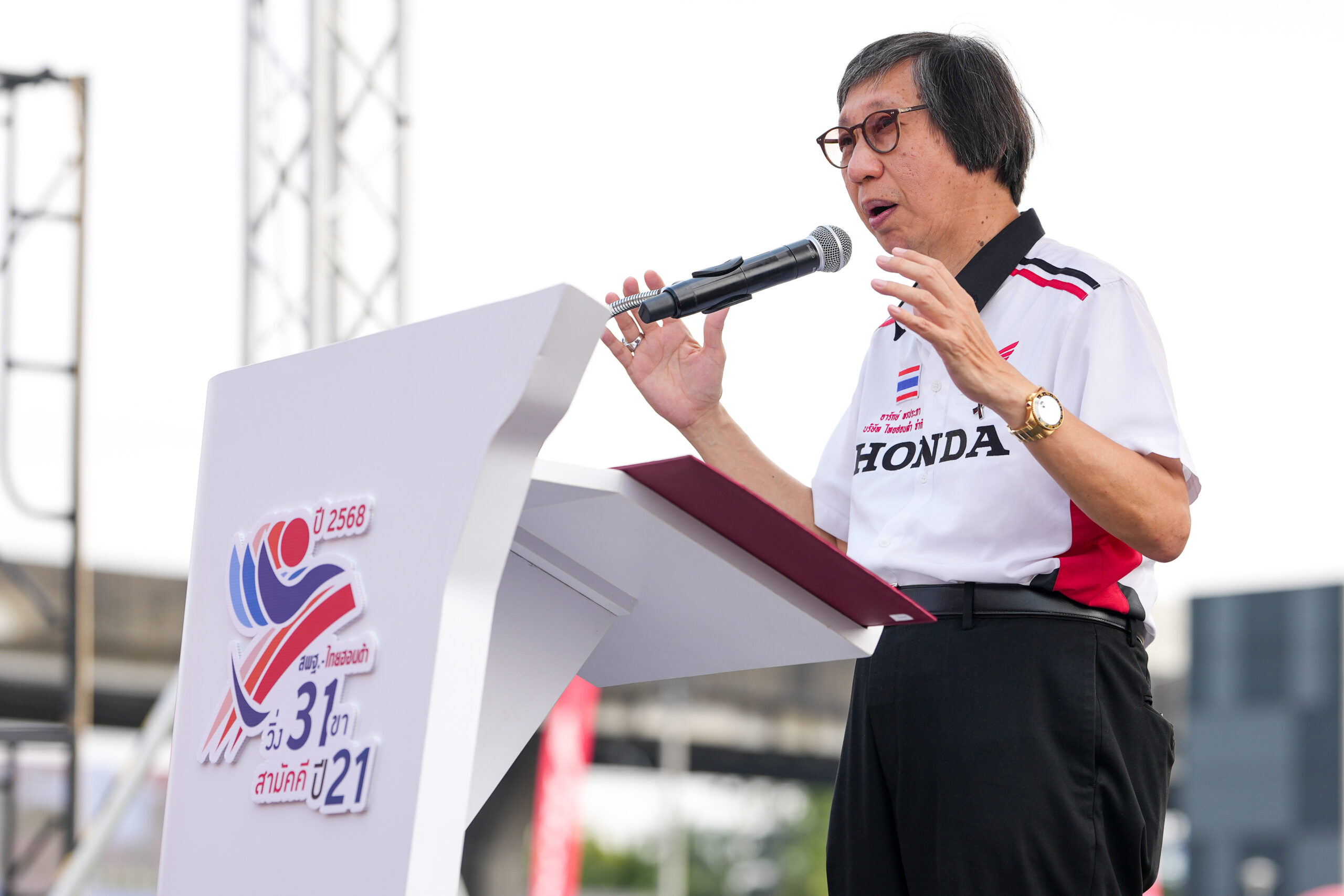 “การแข่งขันในปีที่ 21 นี้ ยังคงจัดขึ้นภายใต้โครงการไทยฮอนด้าเพื่อสังคมไทย โดยมุ่งส่งเสริมการพัฒนาเยาวชนผ่านกิจกรรมกีฬาอย่างรอบด้าน ทั้งด้านร่างกาย จิตใจ ความคิด และทักษะการทำงานร่วมกัน ในปีนี้มีทีมเข้าร่วมการแข่งขันกว่า 200 ทีม จากทั่วประเทศ โดยคณะกรรมการได้จัดการแข่งขันในระดับจังหวัด และคัดเลือกทีมที่ทำเวลาดีที่สุดจำนวน 20 ทีม ผ่านเข้าสู่รอบชิงชนะเลิศระดับประเทศ นับตั้งแต่เริ่มโครงการจนถึงปัจจุบัน มีเยาวชนเข้าร่วมแล้วกว่า 510,000 คน และยังคงได้รับความสนใจจากสถานศึกษาทั่วประเทศเพิ่มขึ้นอย่างต่อเนื่อง สำหรับรอบชิงชนะเลิศในวันนี้ ถือเป็นอีกหนึ่งความภาคภูมิใจของเยาวชนที่ได้เข้าชิงถ้วยพระราชทานสมเด็จพระกนิษฐาธิราชเจ้า กรมสมเด็จพระเทพรัตนราชสุดาฯ สยามบรมราชกุมารี ซึ่งนับเป็นเกียรติอันสูงสุดของการแข่งขันครั้งนี้”