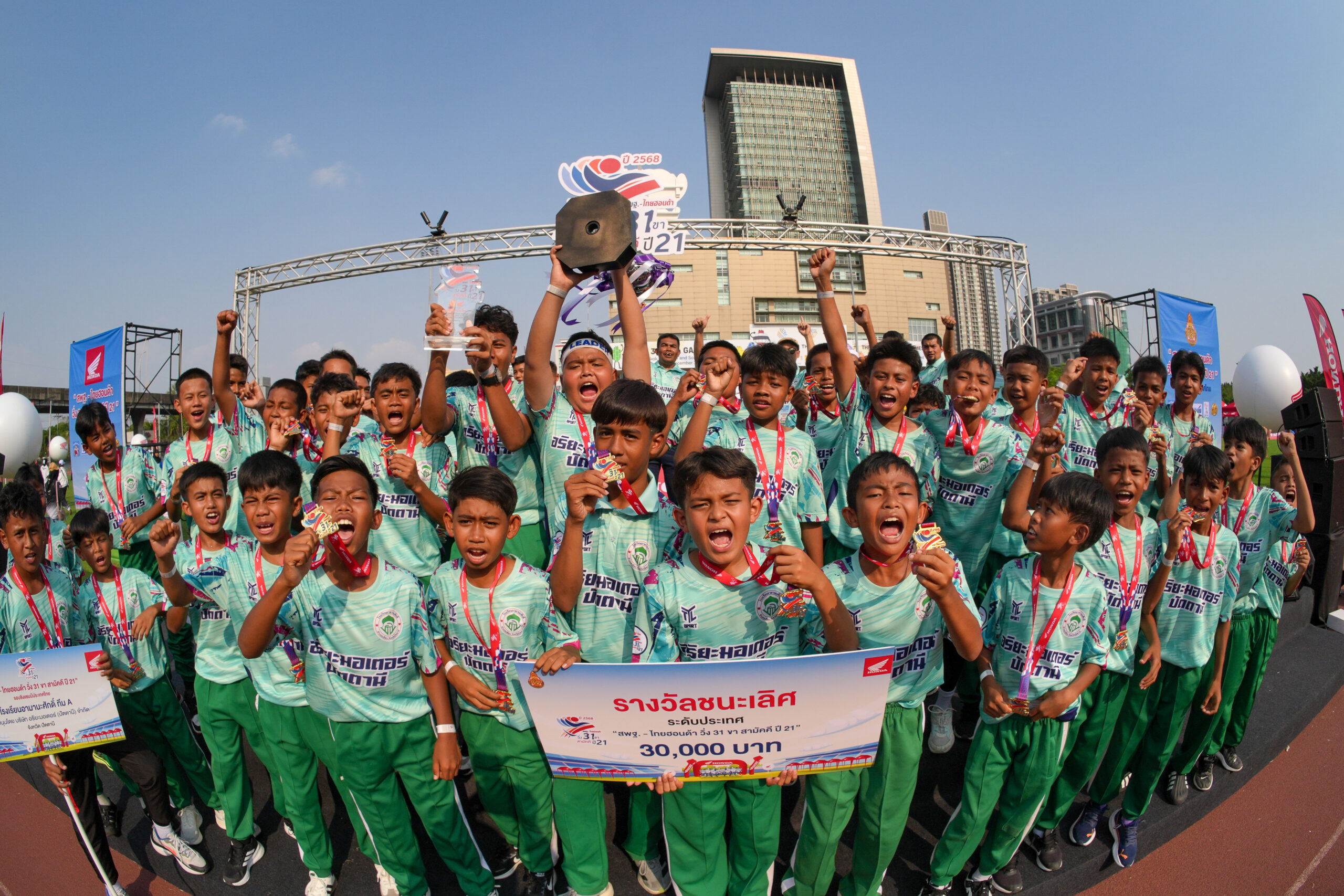 ไทยฮอนด้า ร่วม สพฐ. จุดพลังสามัคคี “วิ่ง 31 ขา สามัคคี ปีที่ 21” รอบชิงฯ โรงเรียนอามานะศักดิ์ (ทีม A) พลิกจากอันดับ 3 ปีที่ผ่านมา ผงาดแชมป์ประเทศไทย คว้าถ้วยพระราชทานฯ