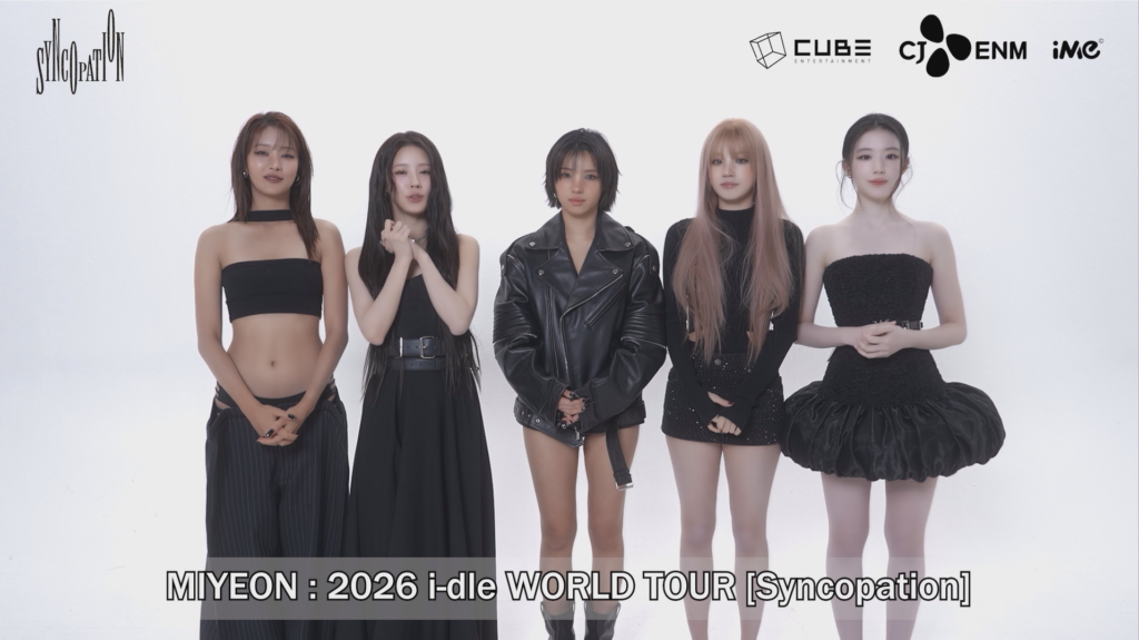 “สวัสดีค่ะ พวกเรา i-dle ค่ะ พวกเราดีใจมากๆ เลยค่ะ ที่กำลังจะได้กลับไปเจอแฟนๆ ชาวไทยอีกครั้งเร็วๆ นี้ ทุกครั้งที่พวกเราได้ไปแสดงที่ ประเทศไทย พวกเรามีแต่ความทรงจำดีๆ กลับมาเสมอเลยค่ะ เชื่อว่าทุกคนก็คงสนุก และประทับใจเหมือนกันใช่มั้ยคะ? ครั้งนี้พวกเรากลับมาพร้อมกับ 2026 i-dle WORLD TOUR [Syncopation] พวกเราจะตั้งใจเตรียมทุกโชว์ที่ มีแต่ความพิเศษเพื่อมอบให้กั บพวกคุณโดยเฉพาะนะคะ อยากชวนทุกคนมาสนุกด้วยกันที่ งาน 2026 i-dle WORLD TOUR [Syncopation] พวกเราตั้งใจเตรียมทุกๆ โชว์เพื่อ NEVERLAND โดยเฉพาะเลยค่ะ ยังไงก็อย่าลืมมาหาพวกเรากั นเยอะๆ นะคะ ในวันเสาร์ที่ 21 มีนาคม 2569 ที่ อิมแพ็คอารีน่า เมืองทองธานีค่ะ เพราะฉะนั้น…ห้ามพลาดเด็ ดขาดเลยนะคะ NEVERLAND ชาวไทยทุกคน…เตรียมตัวให้พร้ อม!!! แล้วมาสร้างความทรงจำใหม่ที่ สวยงามไปด้วยกันอีกครั้งนะคะ รักนะคะ NEVERLAND ขอบคุณค่ะ”